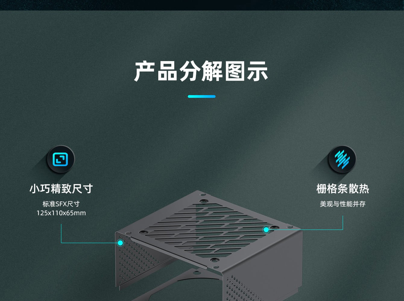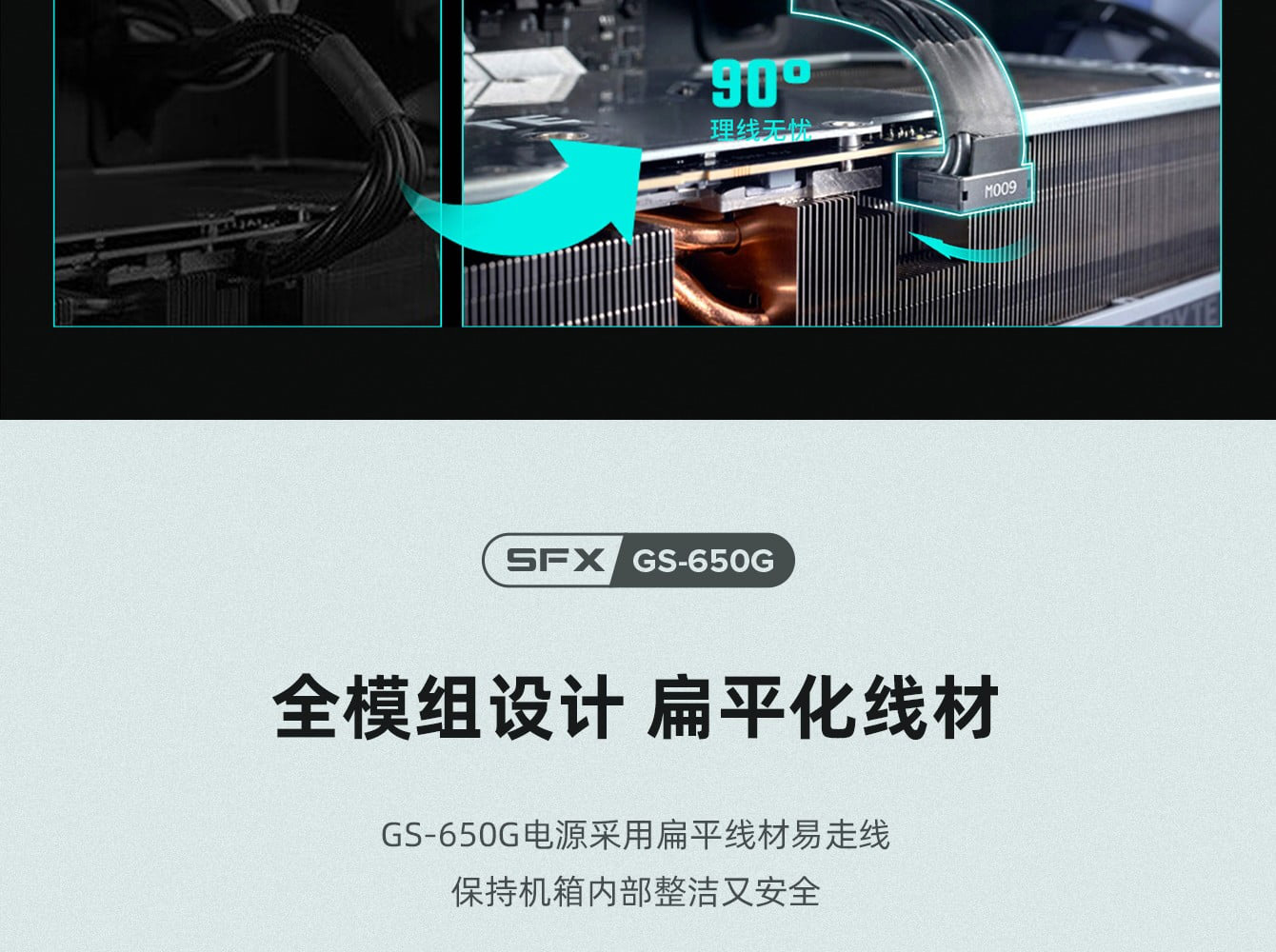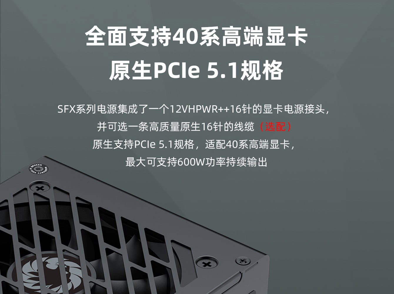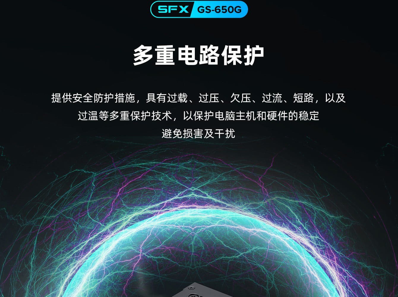 为您的个性机箱提供小型电源。打造专属的电脑系统 1、GameMax SFX系列电源为SFX小尺寸标准带来传奇般的性能和可靠性。 2、它们具有全尺寸高性能电源所具备的功能,符合80 PLUS的效率、优越的电压调节以及智能风扇控制器,以提高可靠性。 3、GameMax的新系列GS-650应用广泛,额定650W SFX小电源功能强大,占用空间小。这是一个标准SFX单元 4、GS-650随包装带SFX至ATX适配器支架,这使得电源不仅可以安装在SFX外形尺寸机箱中,还可以安装在标准ATX机箱中, 5、如果用户希望为PC机箱内的气流保留更多空间。GameMax混合风扇控制始终能够根据需要优化冷却。