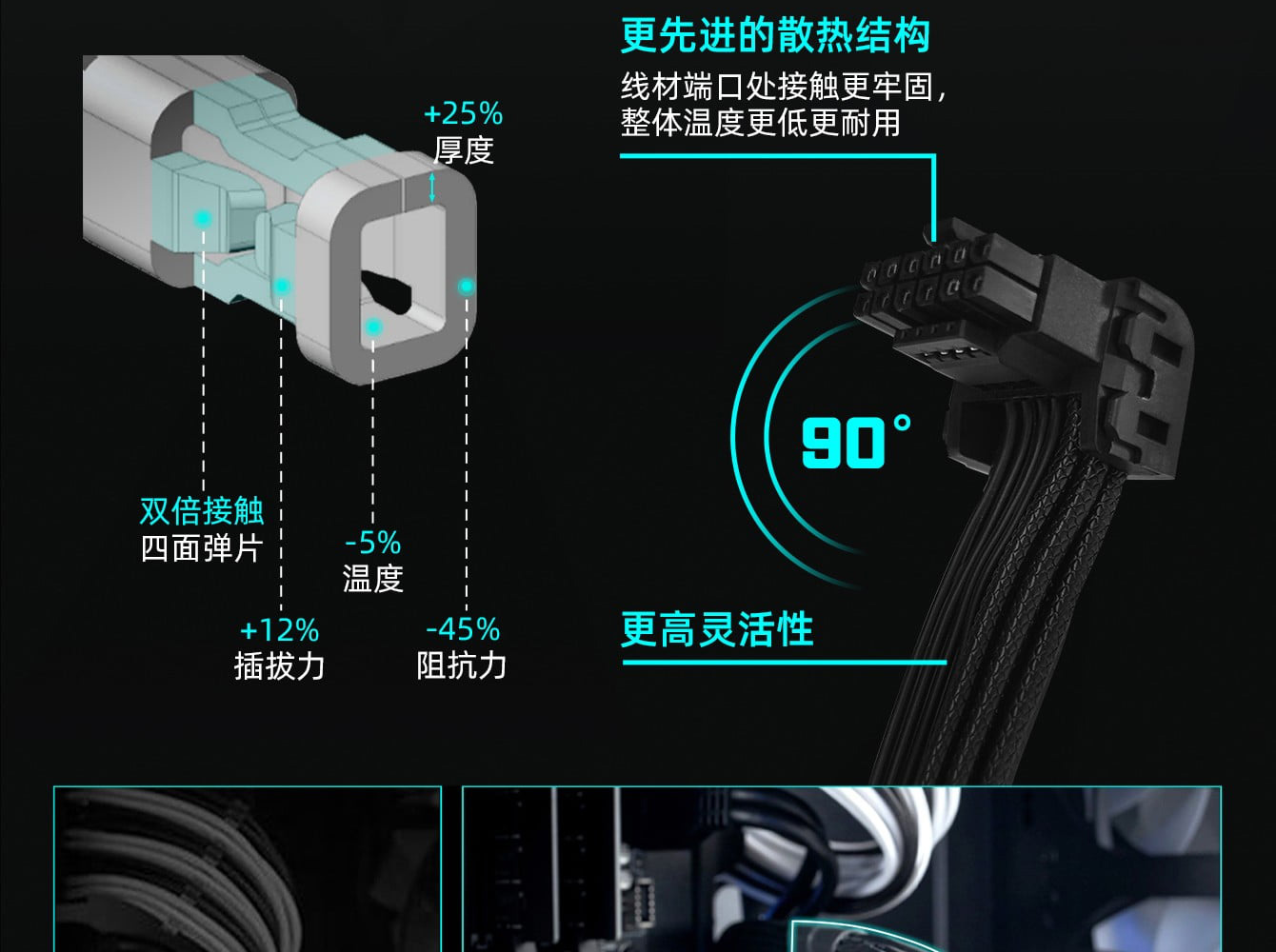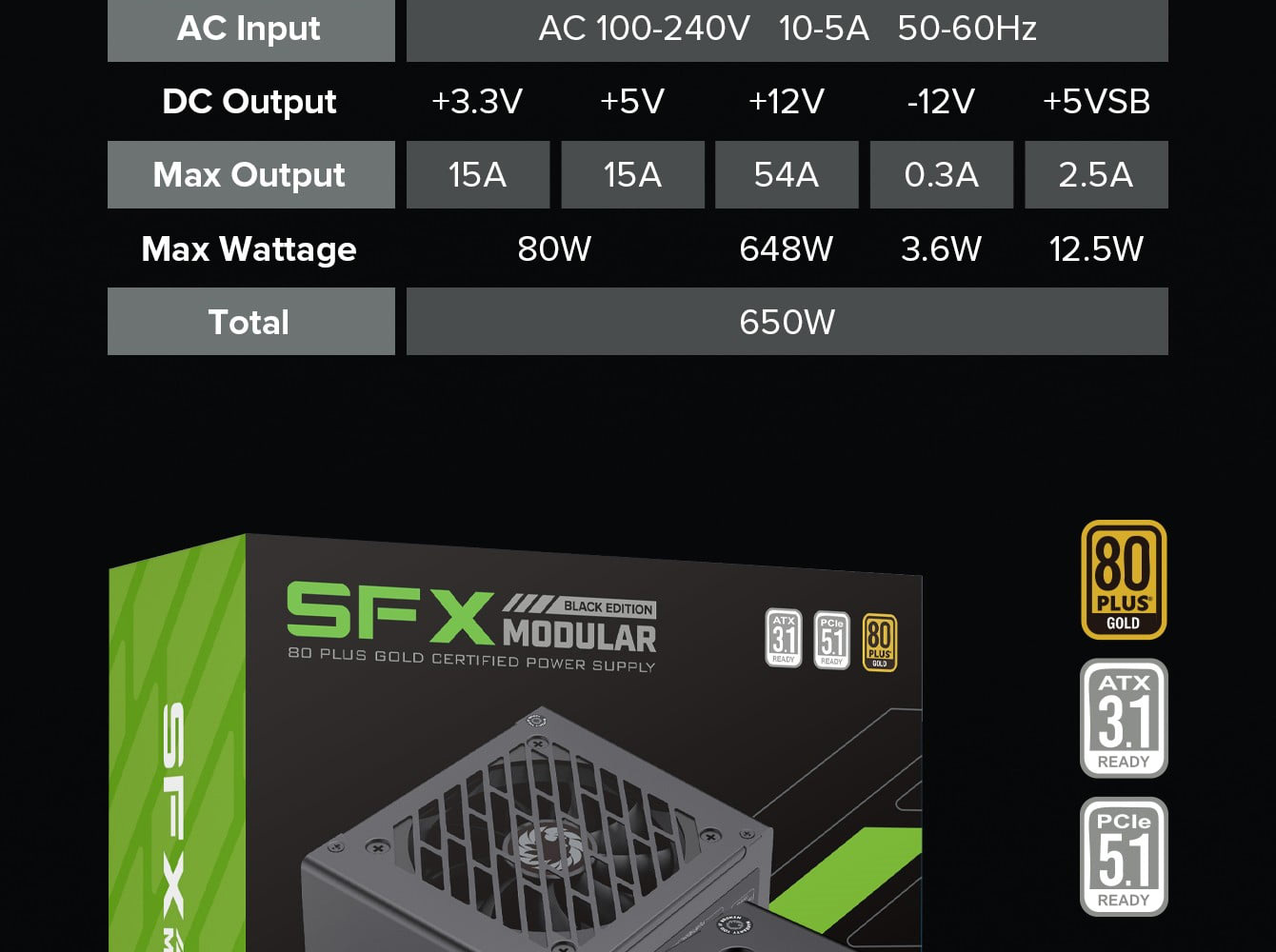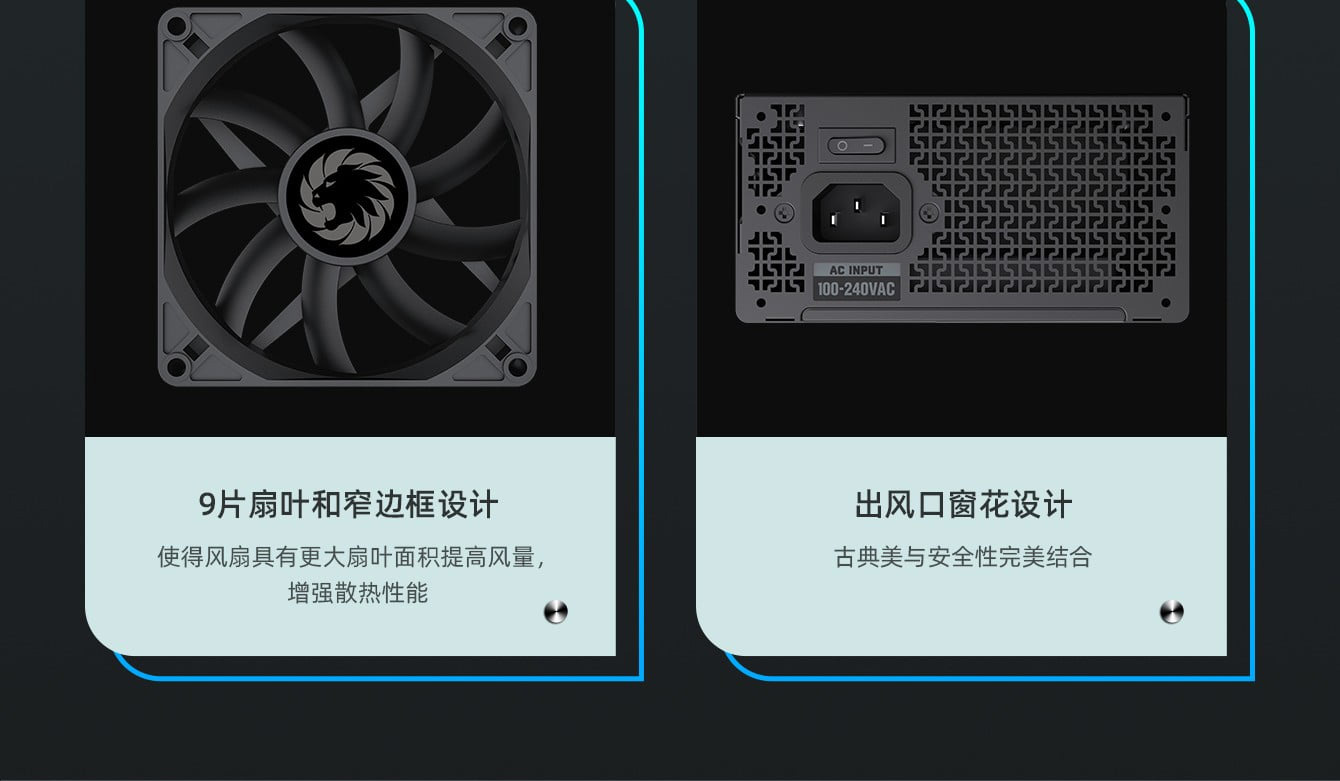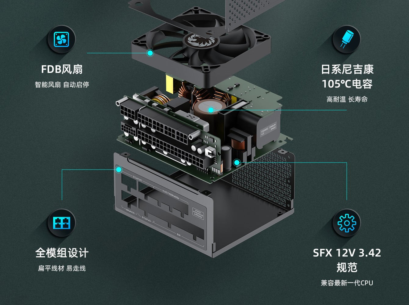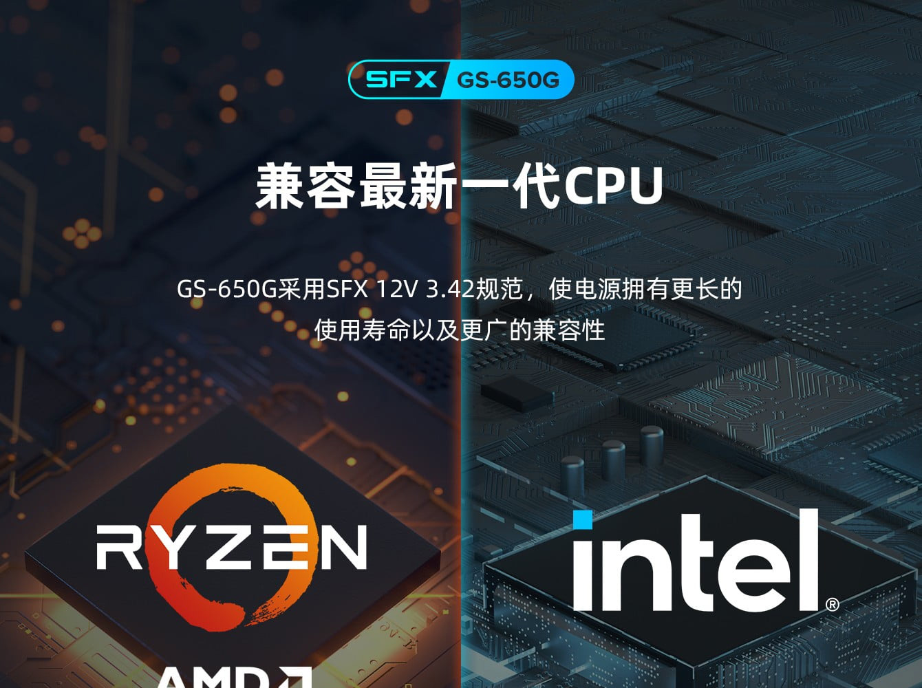 为您的个性机箱提供小型电源。打造专属的电脑系统 1、GameMax SFX系列电源为SFX小尺寸标准带来传奇般的性能和可靠性。 2、它们具有全尺寸高性能电源所具备的功能,符合80 PLUS的效率、优越的电压调节以及智能风扇控制器,以提高可靠性。 3、GameMax的新系列GS-650应用广泛,额定650W SFX小电源功能强大,占用空间小。这是一个标准SFX单元 4、GS-650随包装带SFX至ATX适配器支架,这使得电源不仅可以安装在SFX外形尺寸机箱中,还可以安装在标准ATX机箱中, 5、如果用户希望为PC机箱内的气流保留更多空间。GameMax混合风扇控制始终能够根据需要优化冷却。
