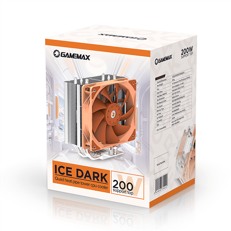 Gamemax Ice Wind CPU Air Cooler, 4 Heat-Pipes, 120mm PWM Fan, No Light ,Fins Bending, 4-pin CPU Cooler, For Intel LGA 1700 115X, and AMD AM4 AM5