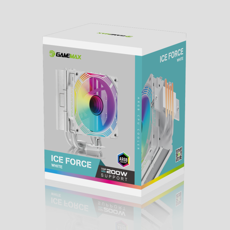 GameMax Ice Force White Tower CPU air cooler, Painted White, fours thermal tubes, Supports Intel Gen12,13 CPUs and AMD latest model, ARGB lighting effects