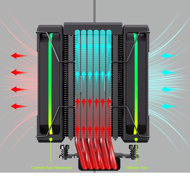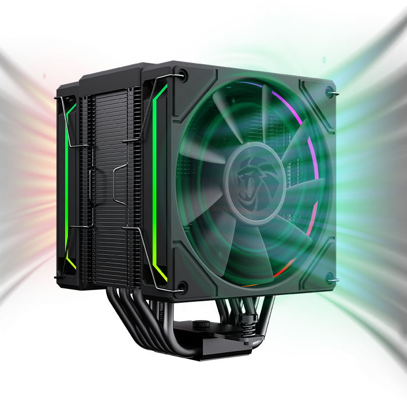 High-Performance Dual Fan Tower-Equipped with 6 x 6mm heatpipes and dual 120mm fans for powerful, efficient heat dissipation.
