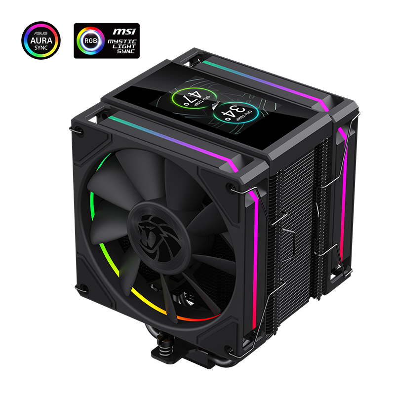 SIGMA 620 High-Performance CPU Cooler: Dual 120mm Fans + Six Heatpipes for Powerful Cooling, 245W TDP Support, Equipped with 2.8inch Customizable LCD Screen and ARGB Lighting