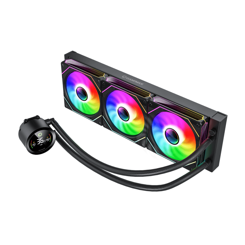 GameMax IceBurg 360V Digital BK, Liquid CPU Cooler 360mm Addressable ARGB Pump Fans 290W TDP AIO Water Cooler