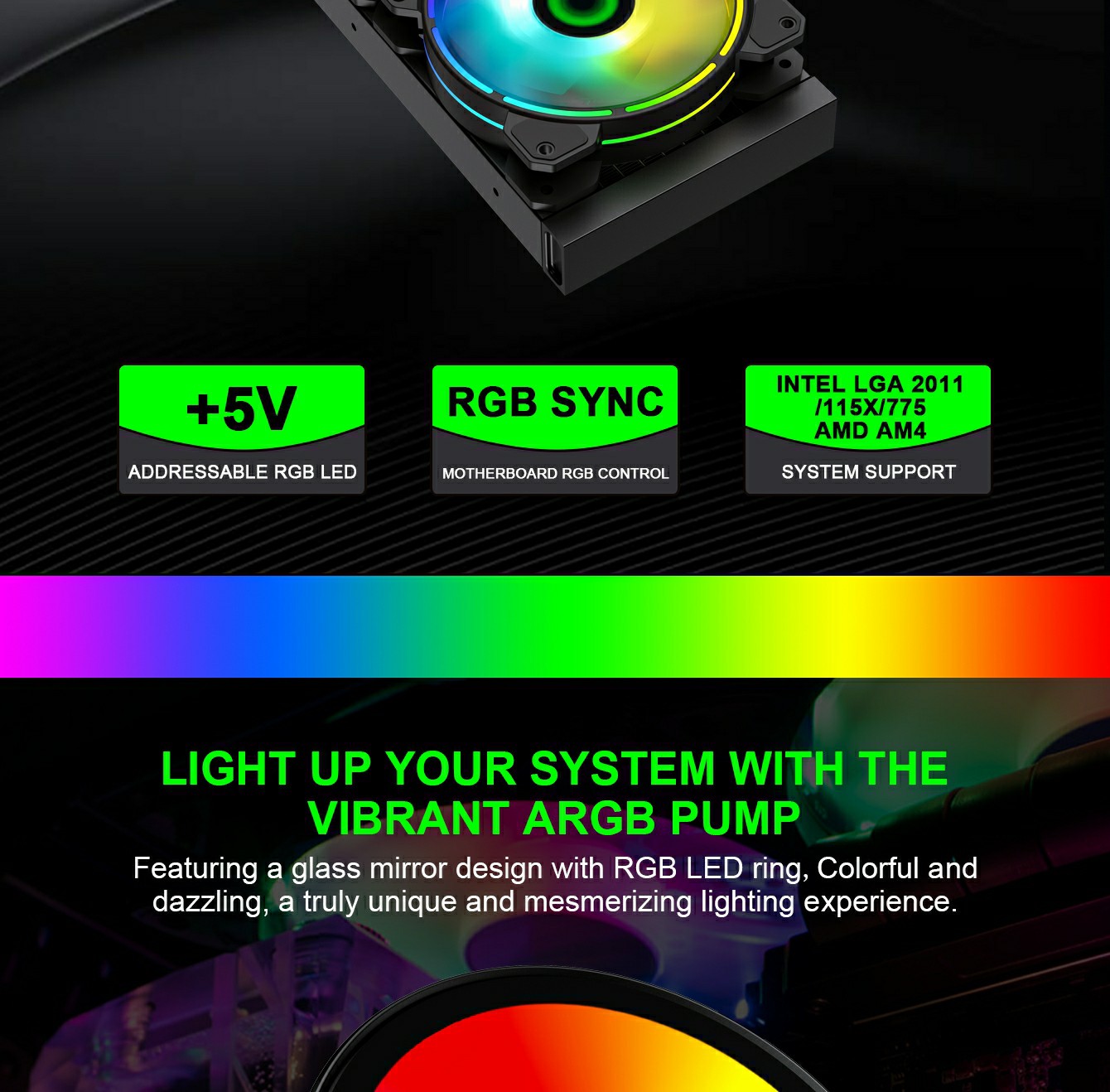 | Pump | Block Compatibility | Intel LGA 2066/2011/1200/115X/775 AMD AM4/AM3+/AM3/AM2/FM2+/FM2 |