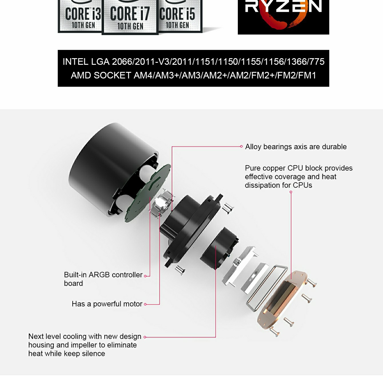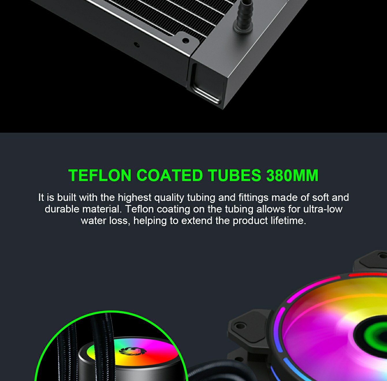 • Long-lasting Durability: The Teflon-coated tubing significantly reduces water loss, and combined with high-quality bearings, it greatly extends the lifespan of the liquid cooler.