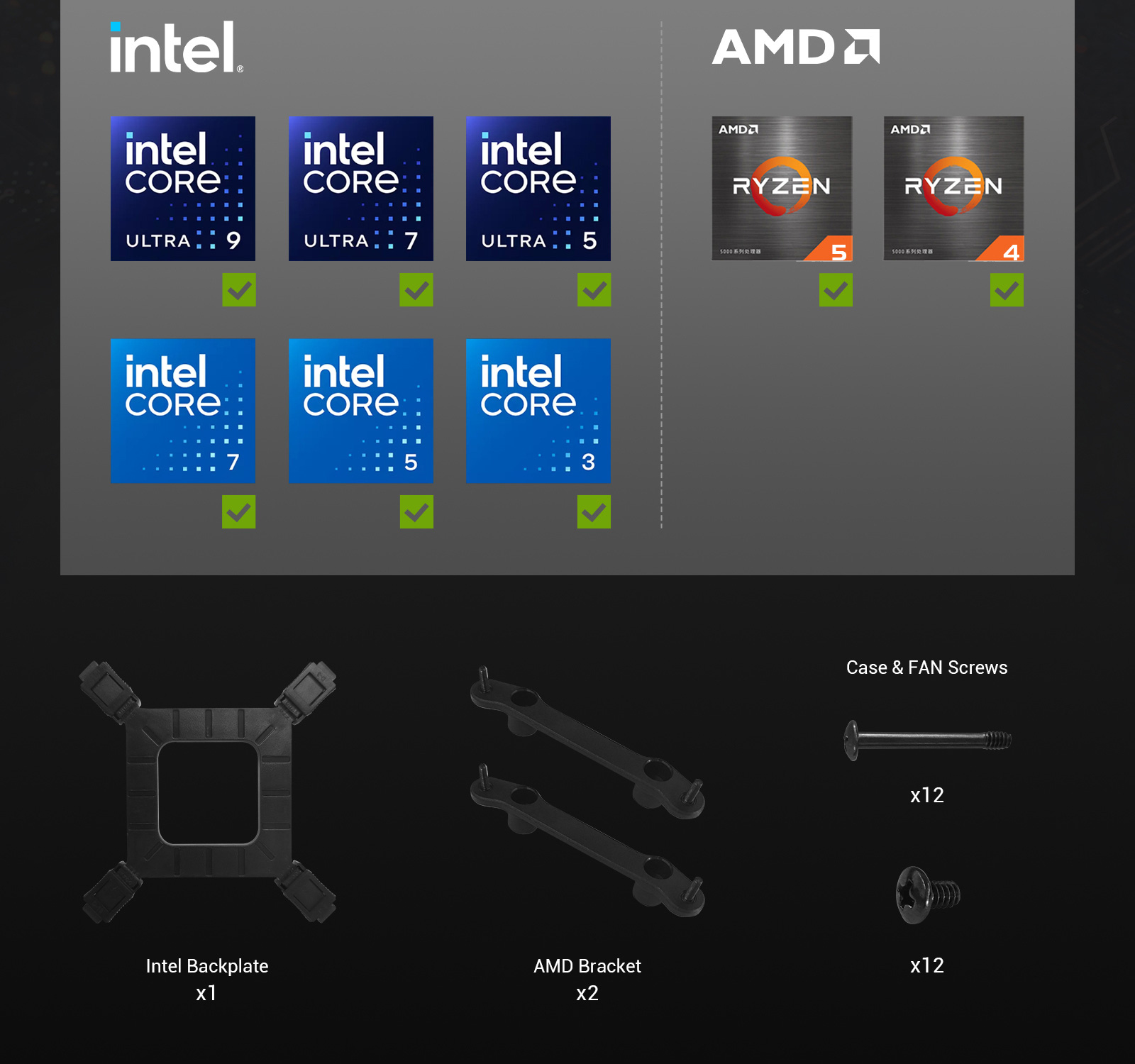 Compatibility | Intel | LGA115X/1200/1366/1700/1851/2011 |