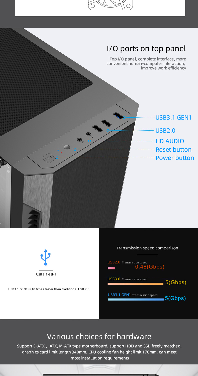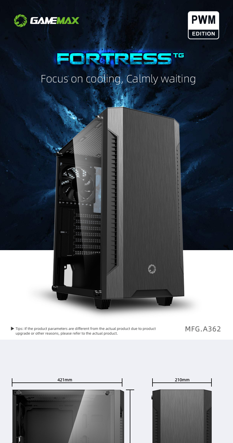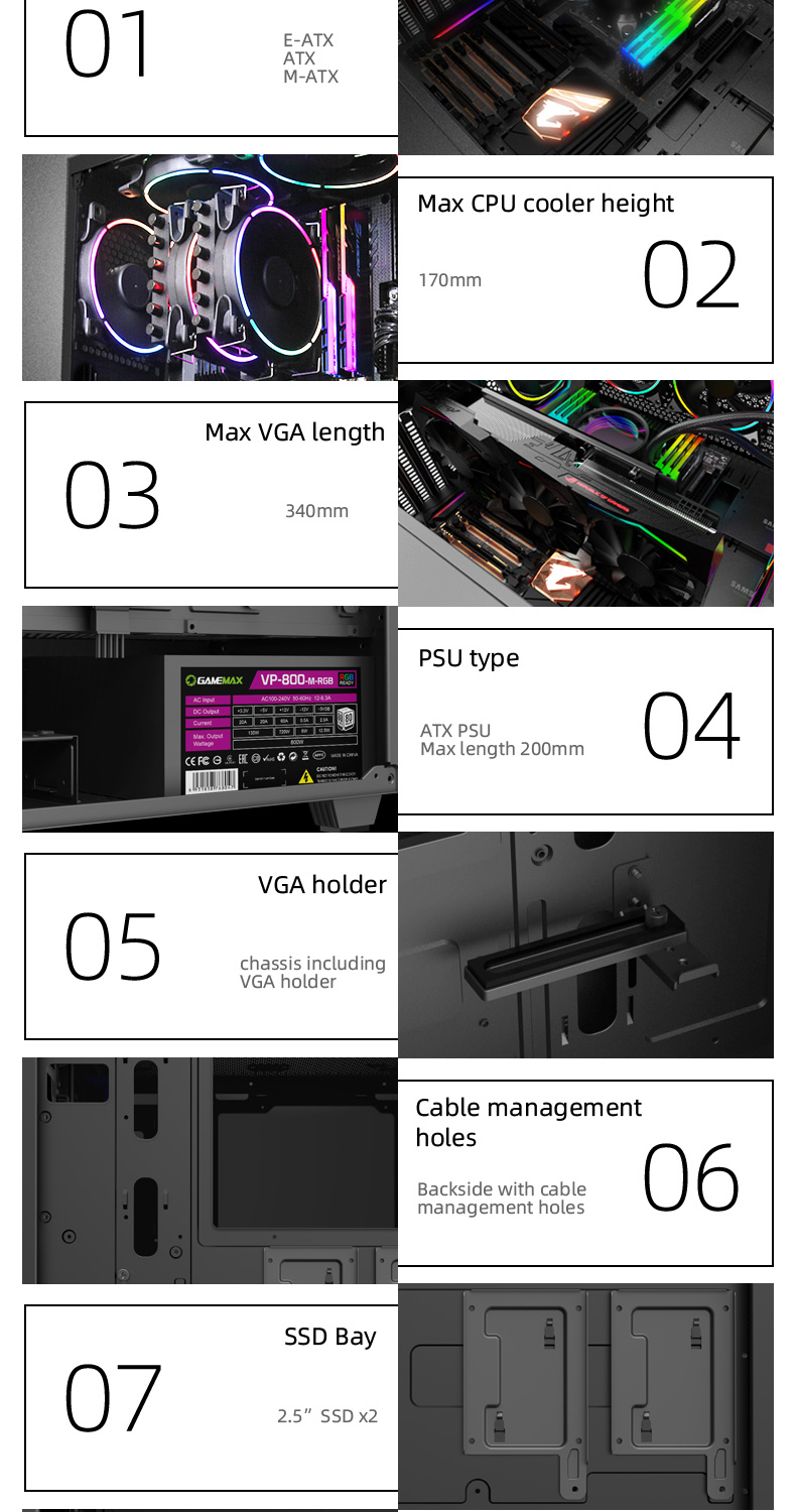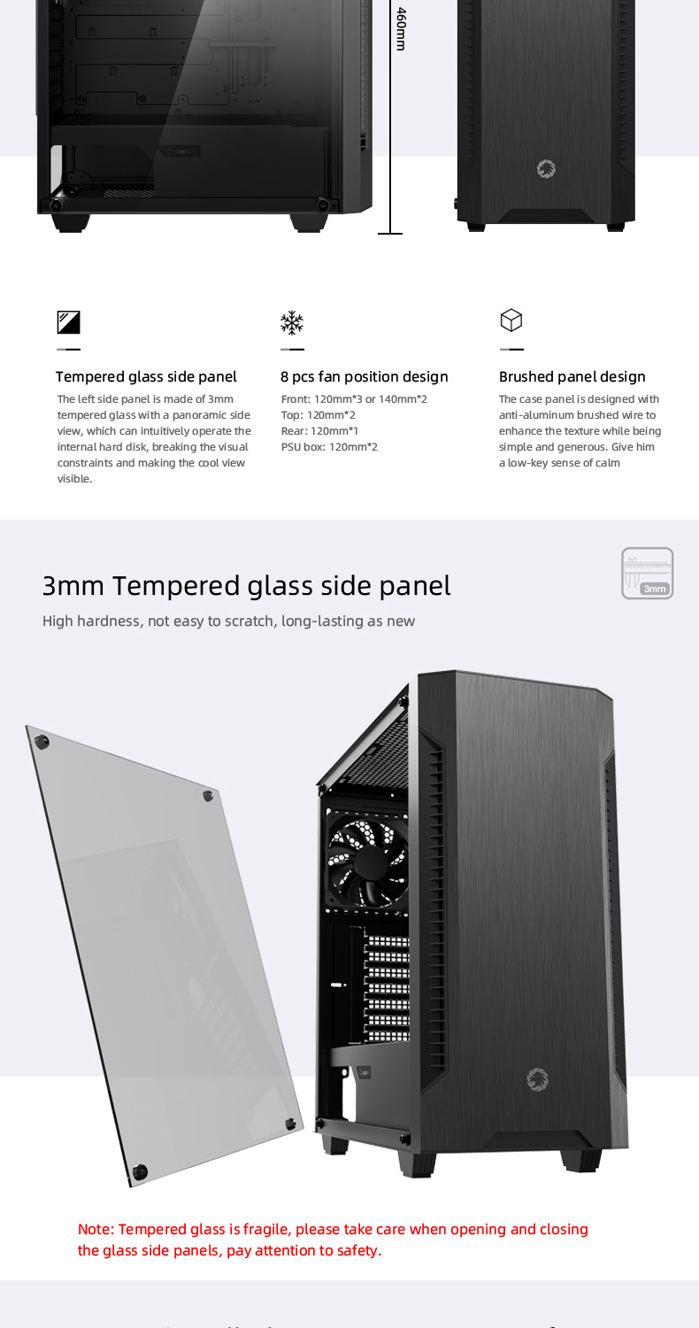 | M/B Form Factor | ATX、M-ATX、E-ATX (no Fan on front) | |