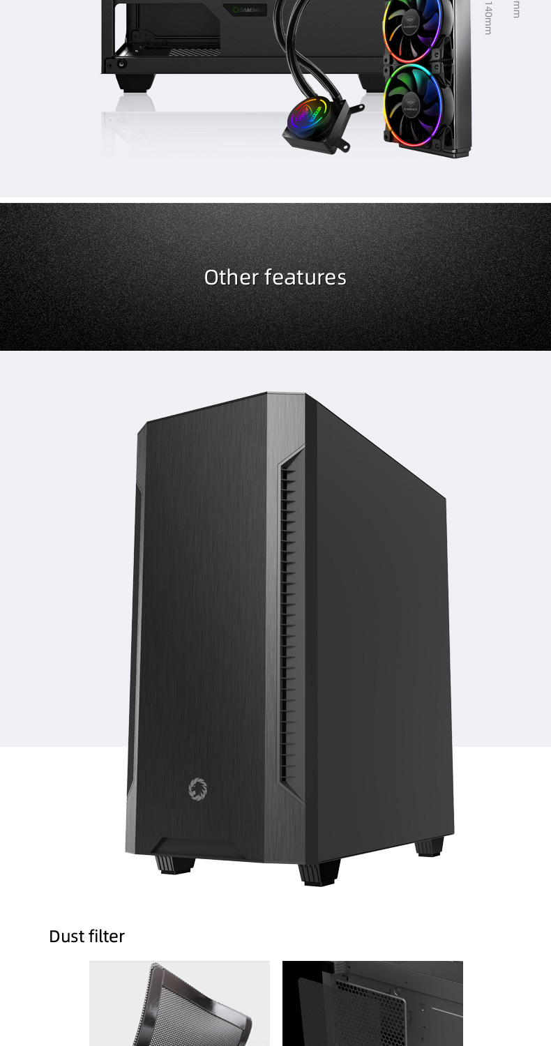 | Top | 2x120mm ,2x140mm (Fan optional) | |