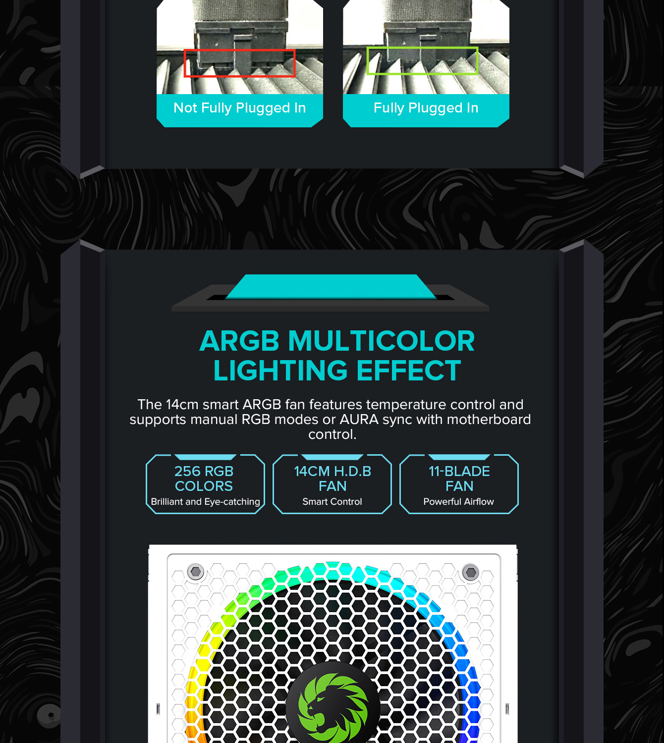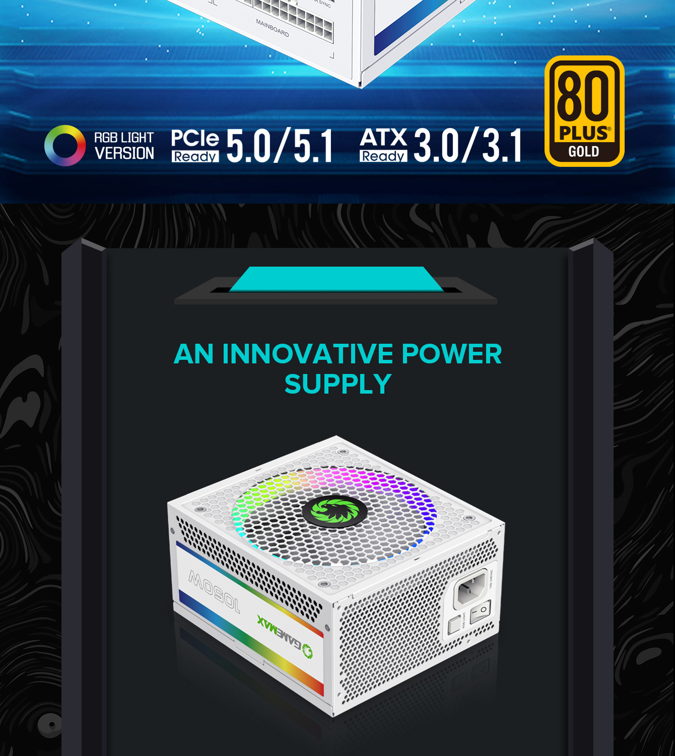 GameMax 1050W Netzteil für PC – 80+ Gold, RGB Lichtmodus ARGB SYNC Netzteil
