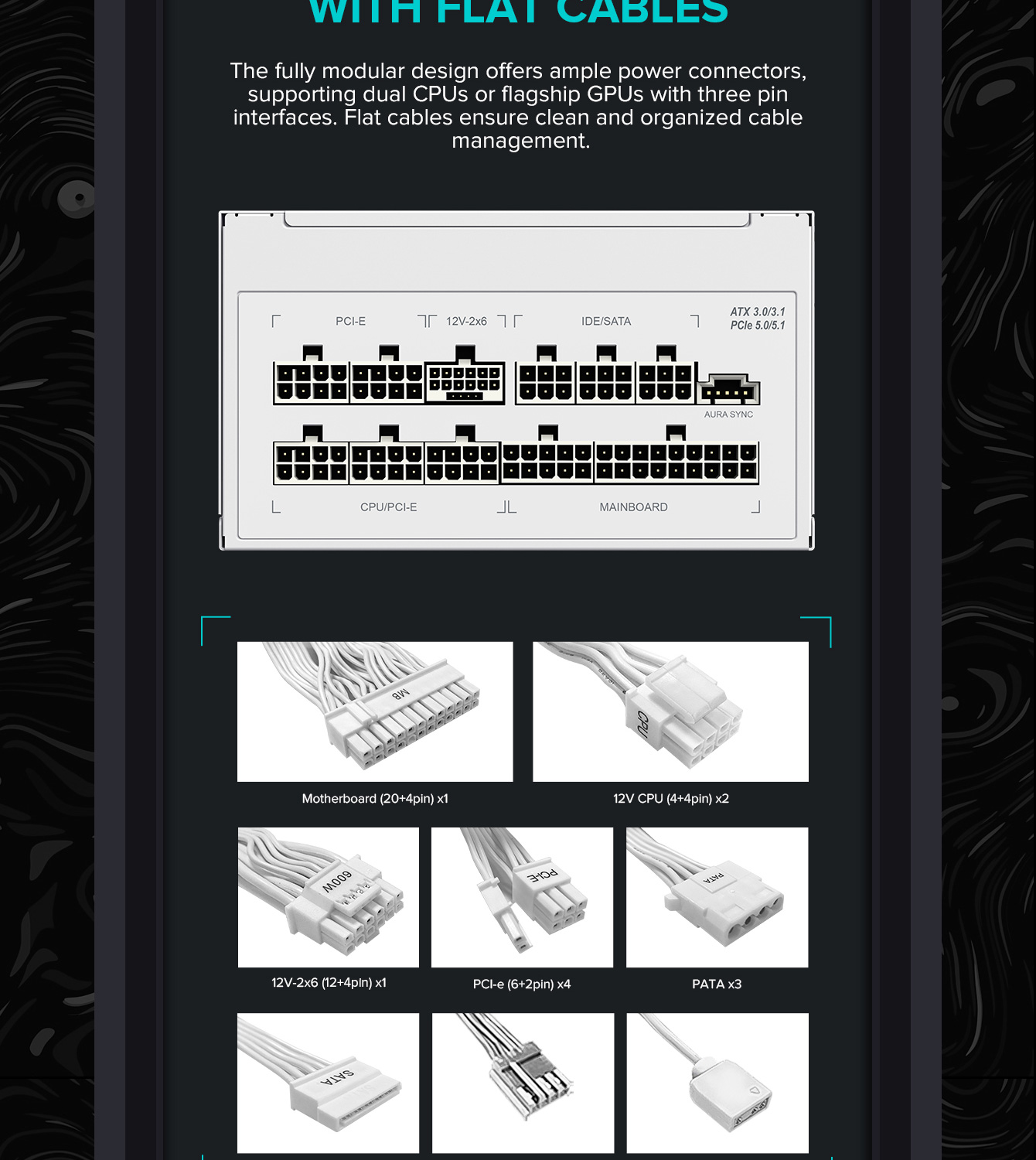 • Kompatibilität: Unterstützt ATX 3.0/3.1, PCIe 5.0/5.1, 16-Pin 12V-2*6 für die neuesten GPUs.