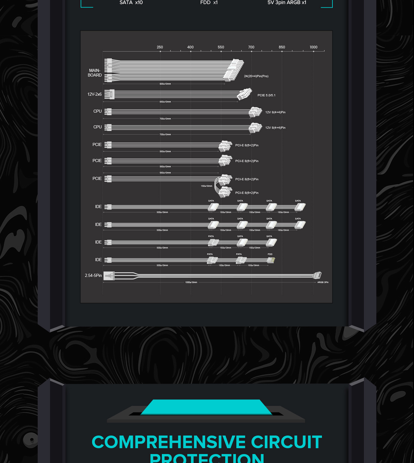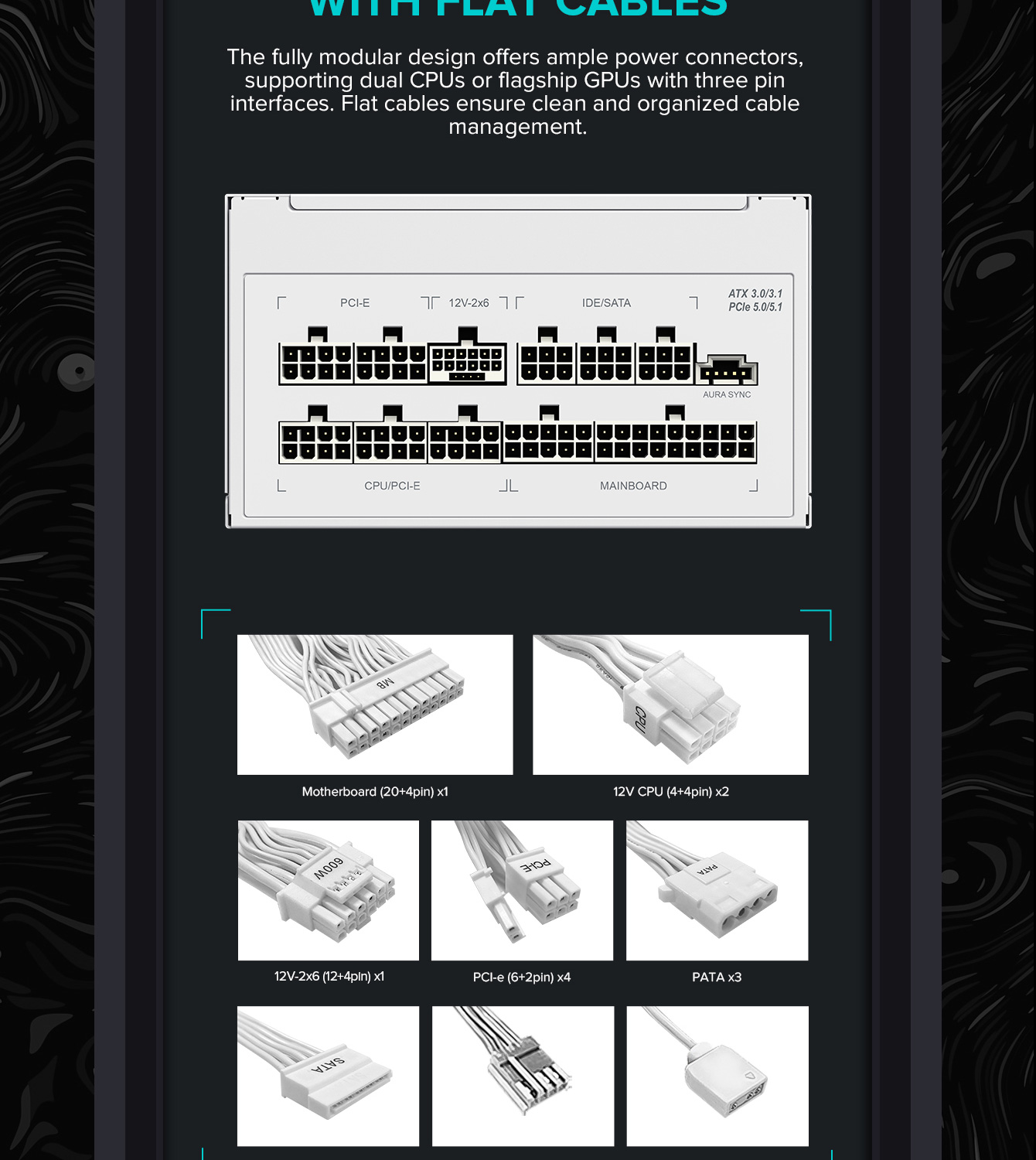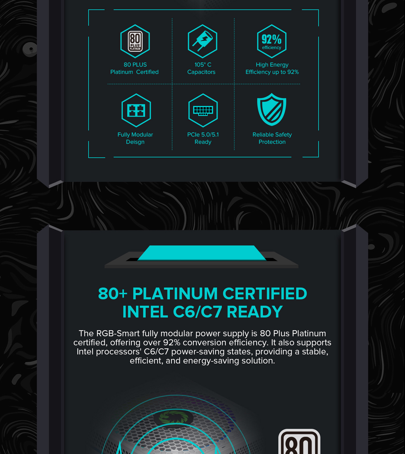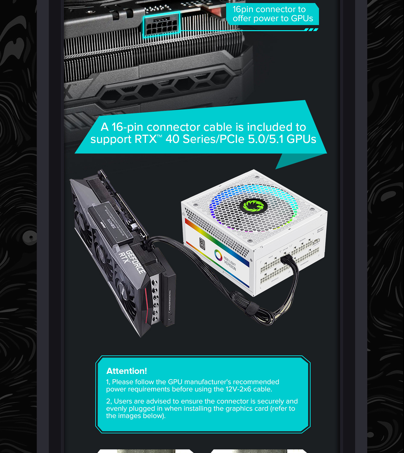 • Kompatibilität: Unterstützt ATX 3.0/3.1, PCIe 5.0/5.1, 16-Pin 12V-2*6 für die neuesten GPUs.
