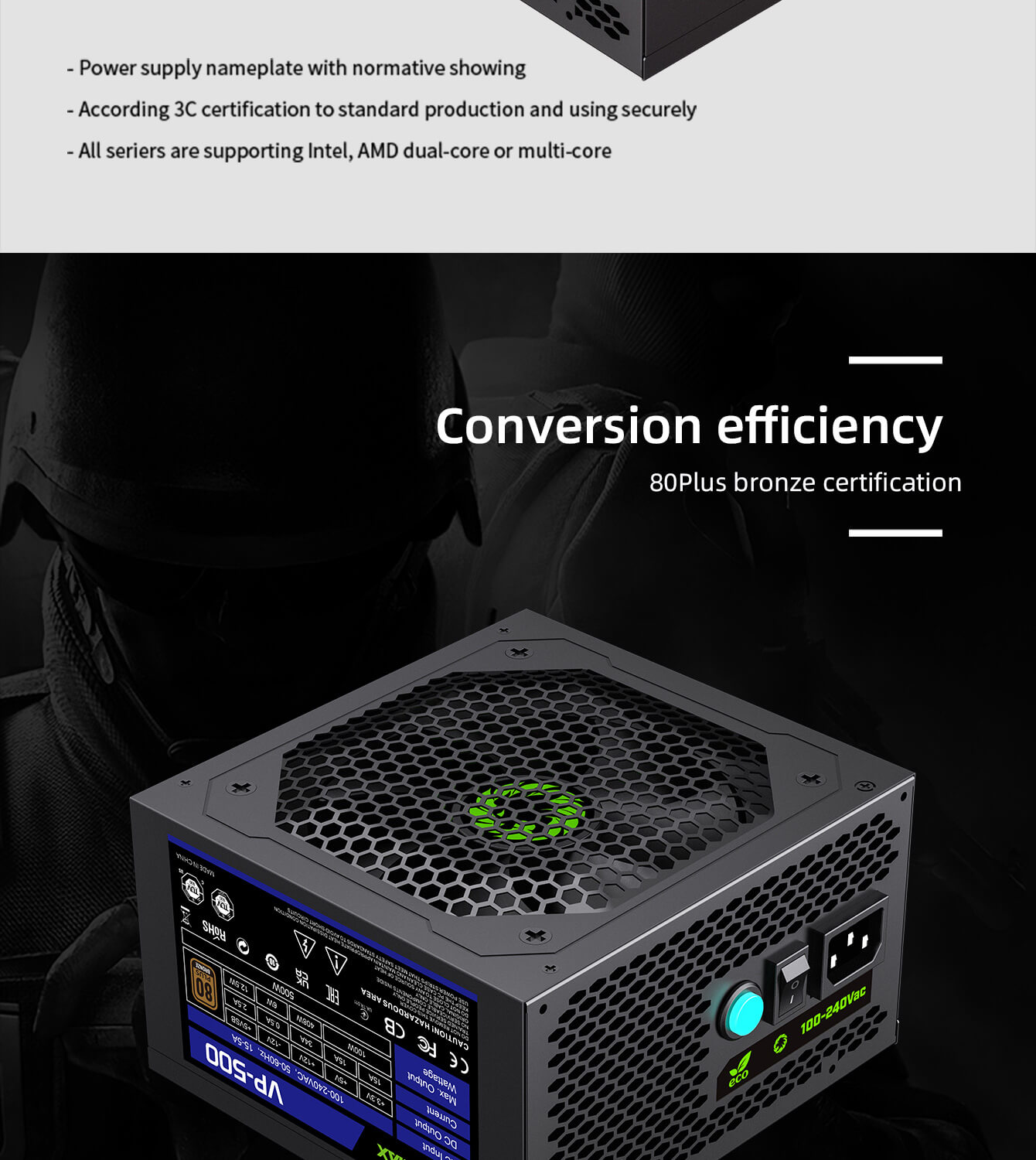 | Efficiency Level | 80+ Bronze | |