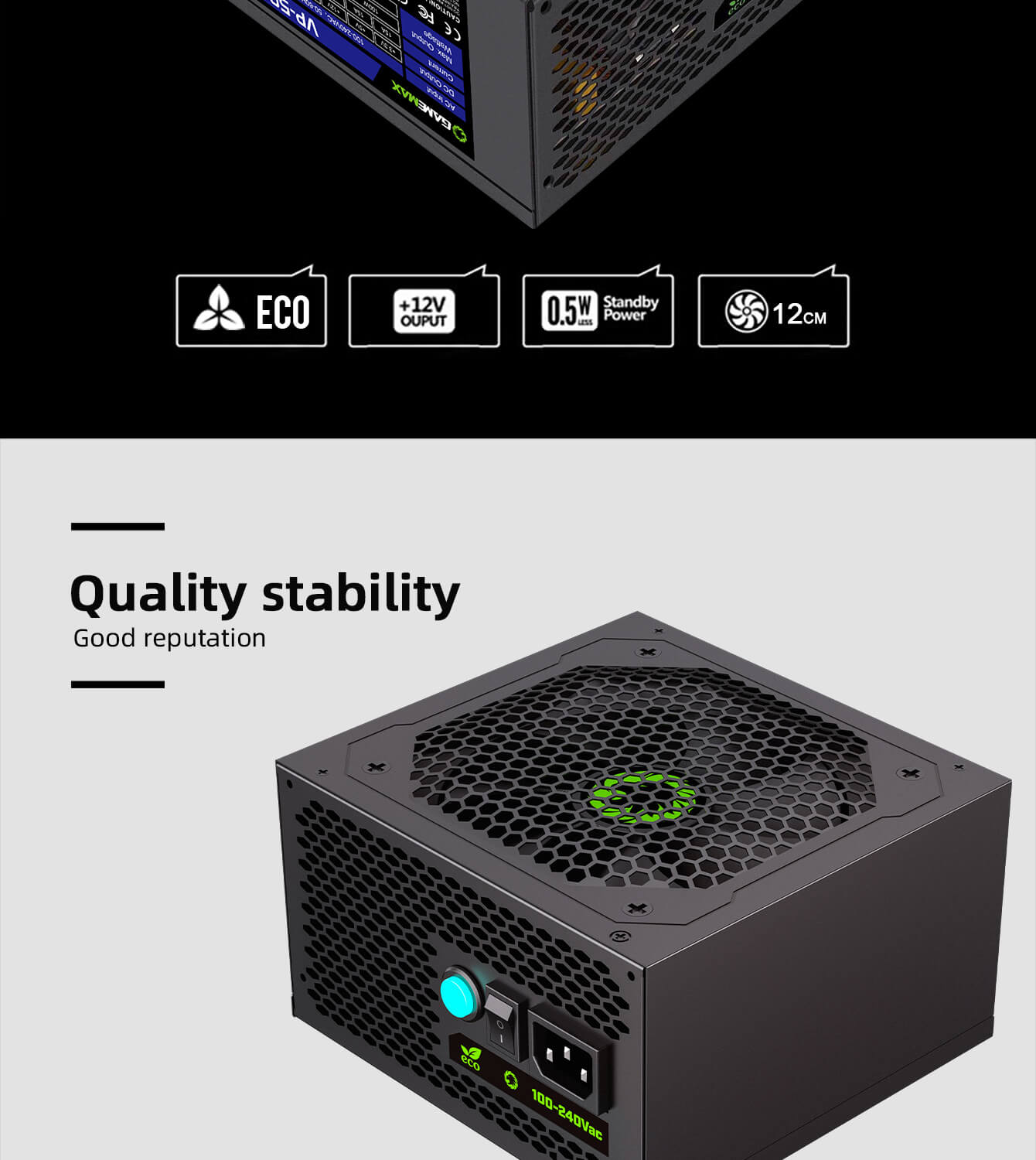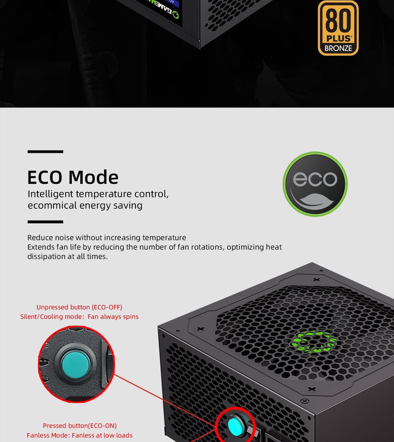 GameMax 500w 80Plus Bronze Netzteil – Hohe Effizienz, Silent Mode & Optimale Kühlung für Gaming-PCs