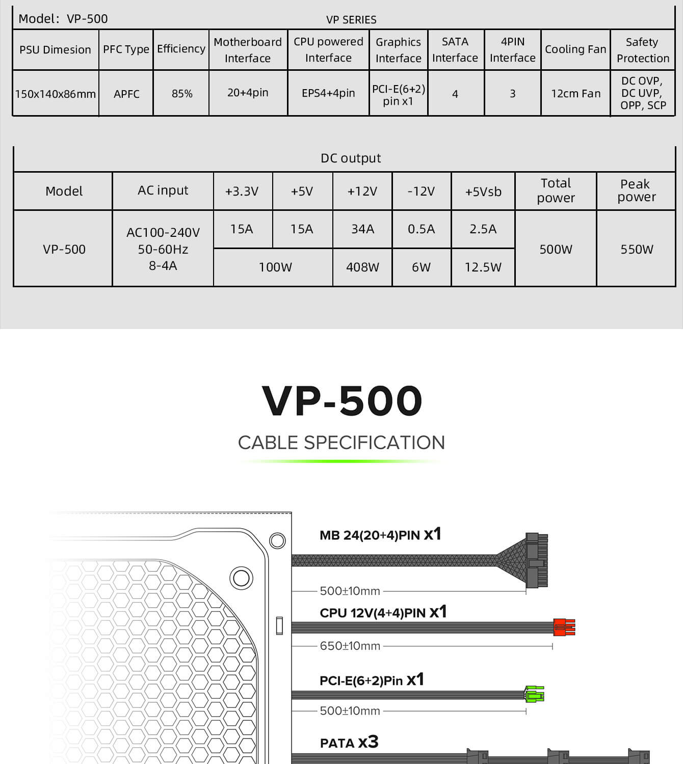 | Max Output | 500W | ||||
