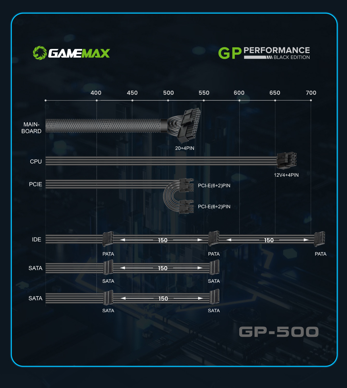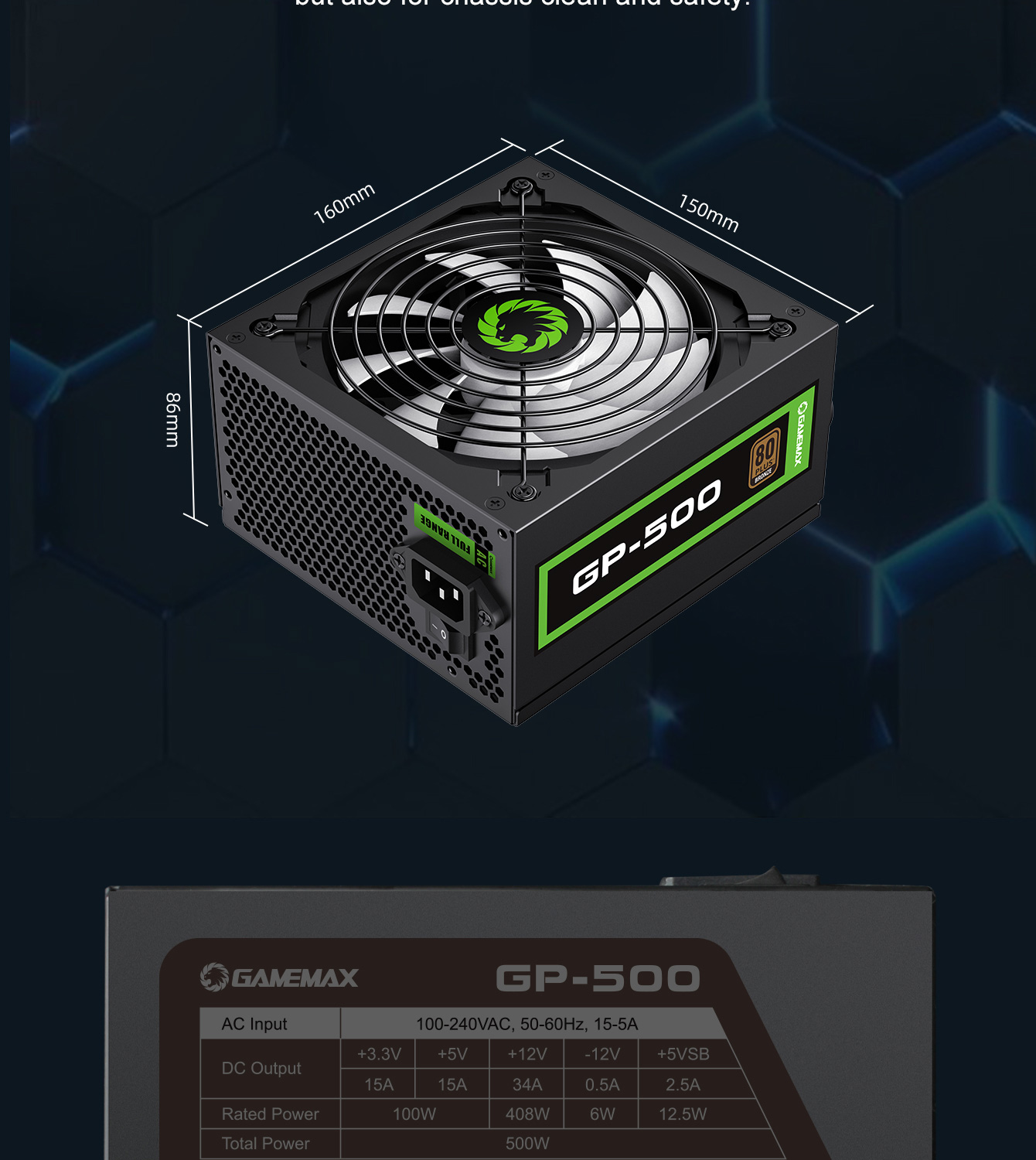 GameMax 500W 80 Plus Bronze PC Netzteil – DC-to-DC Technologie, Hohe Effizienz, Silente Kühlung, ATX12V
