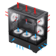 • Optimale Kühlung: 9 Lüfterplätze, Mesh-Panels für perfekte Belüftung und modulare I/O-Platine für flexible Kühllösungen.