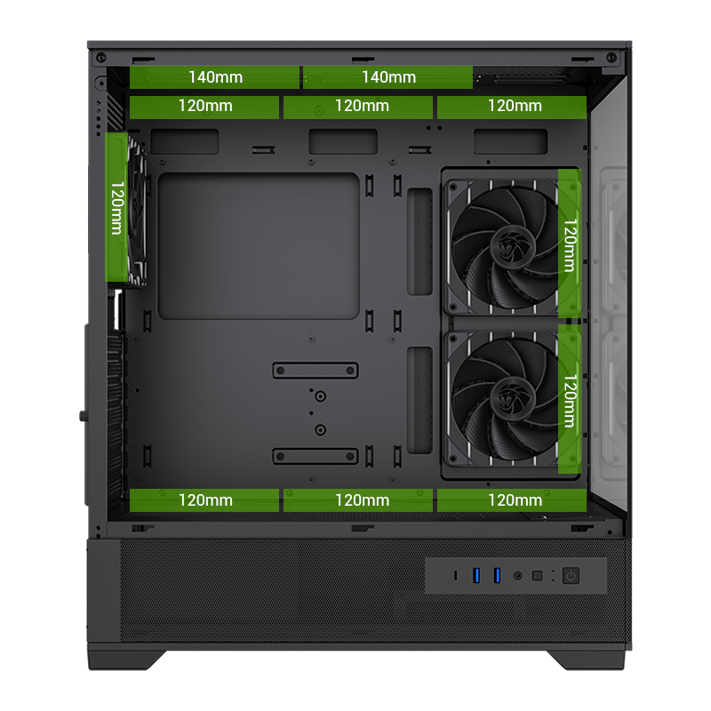 Top: | 3x120mm ,2x140mm (Fan optional) | |