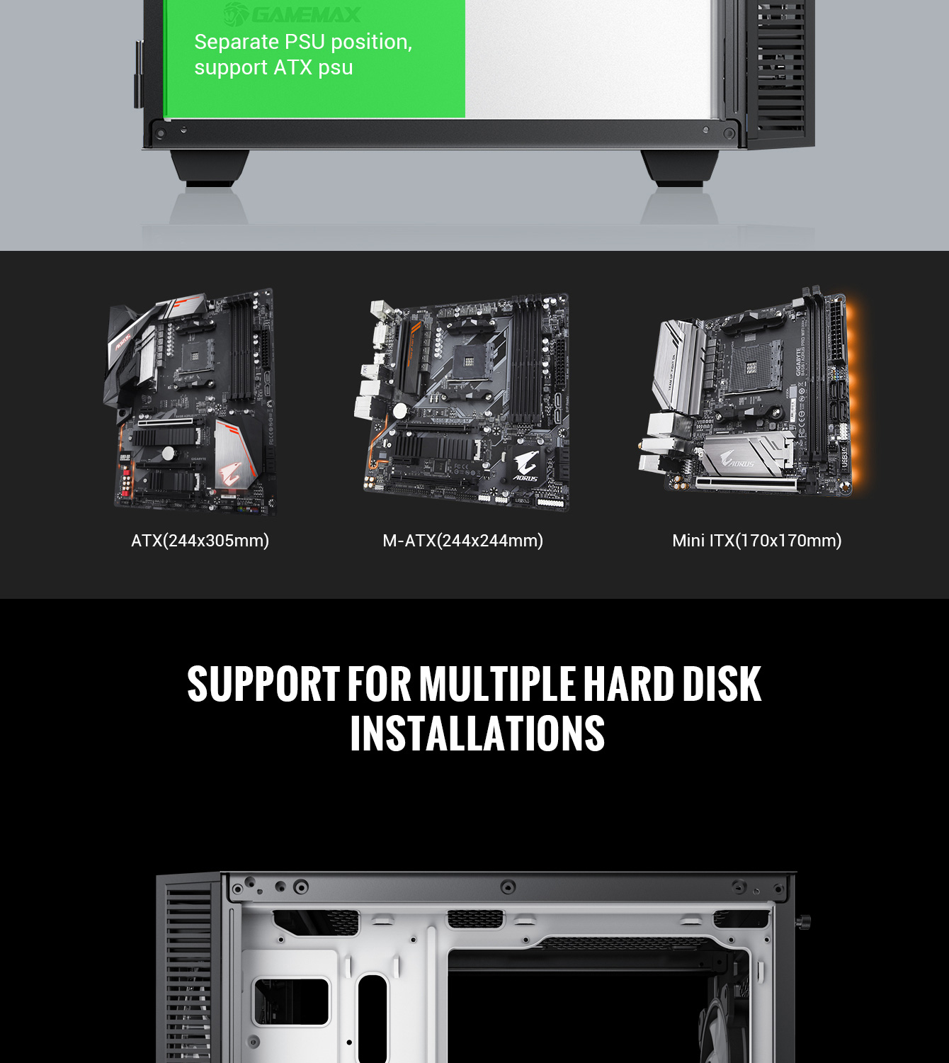 • In line with the GameMax ethos this case offers style, performance and the ultimate experience.