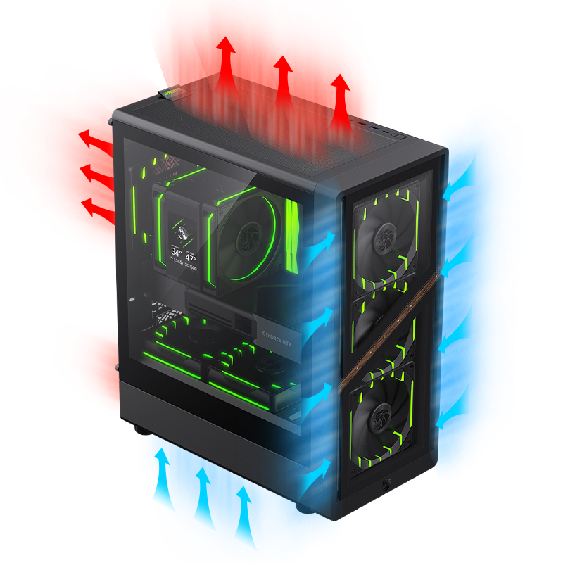 Superior Thermal Performance - High-airflow mesh front panel and vertical airflow layout ensure efficient heat dissipation during intense gaming and heavy workloads.