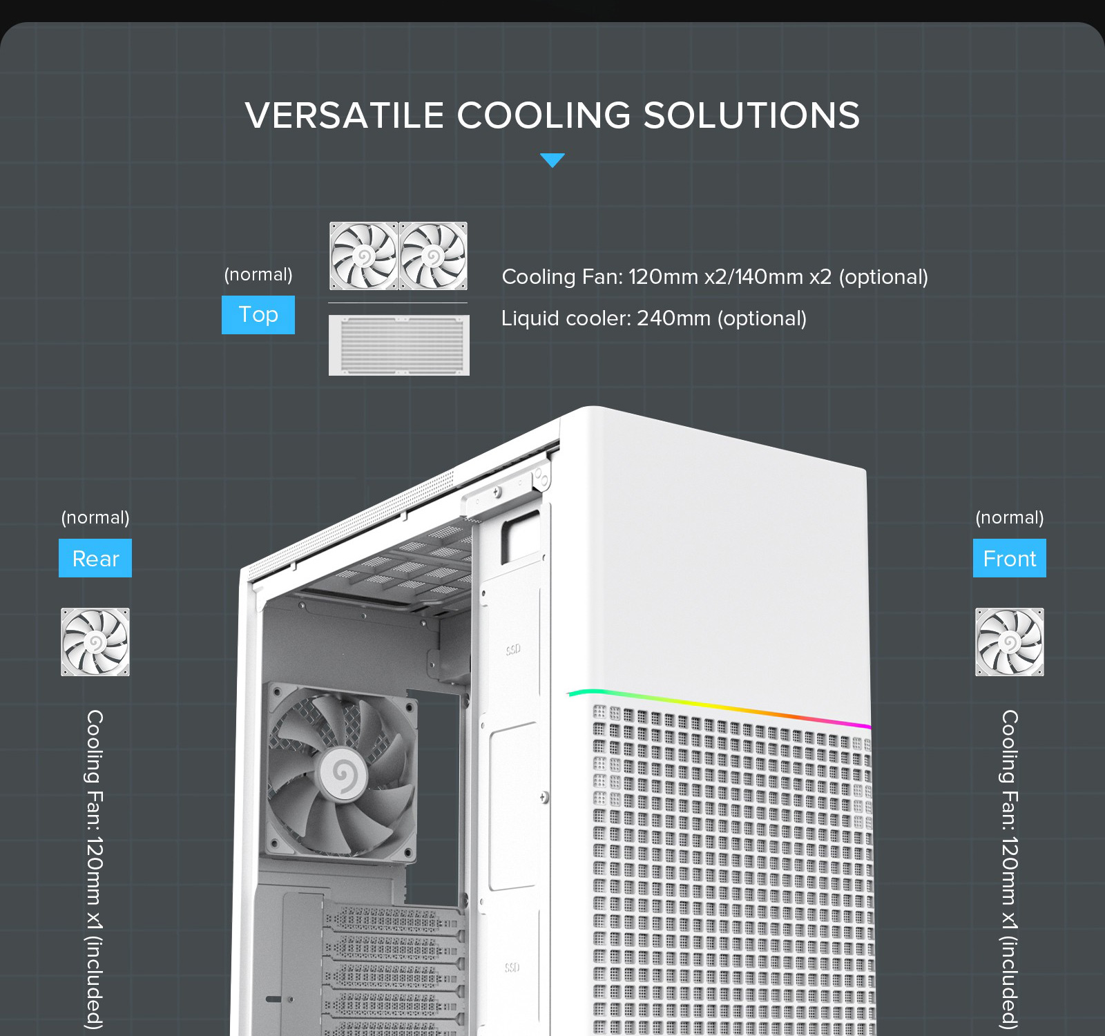 • Advanced Cooling: Pre-installed 120mm rear fan, supports additional fans and water cooling up to 240mm