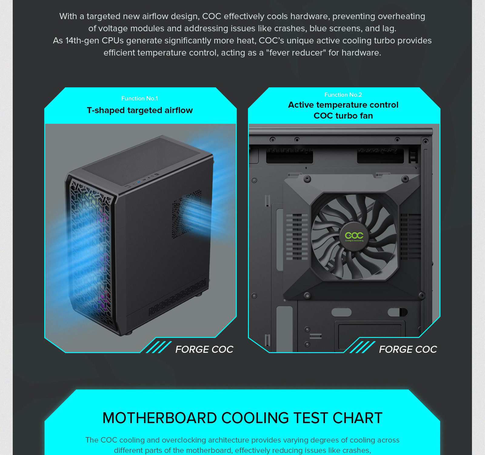 Caja para PC Forge COC mATX Gaming con iluminación, 4 ventiladores ARGB preinstalados y un sistema patentado COC (Cooling and Overclocking Architecture) que garantiza un rendimiento óptimo para los jugadores.