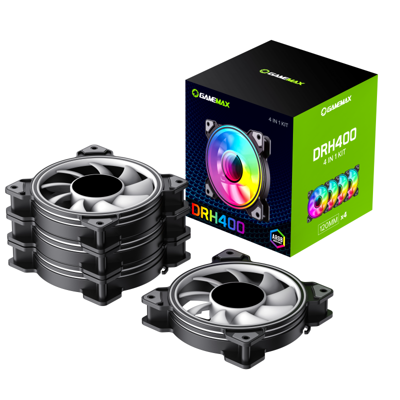 GameMax DRH400, 120mm Dual Ring ARGB Fan 4 in 1 Kit, Along Includes Premium V4.0 ARGB HUB with Wireless Remote Controller - High-Performance Cooling Fan for PC Case
