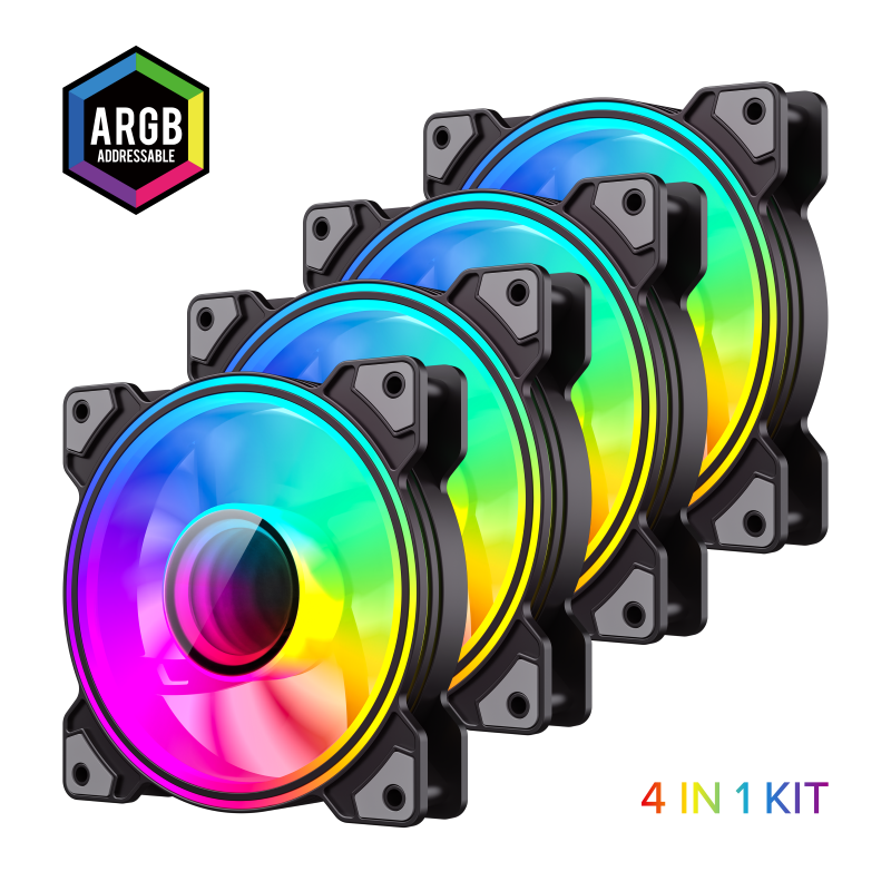 • 【Intelligent Speed Control】4 pcs 120mm full function ARGB fans