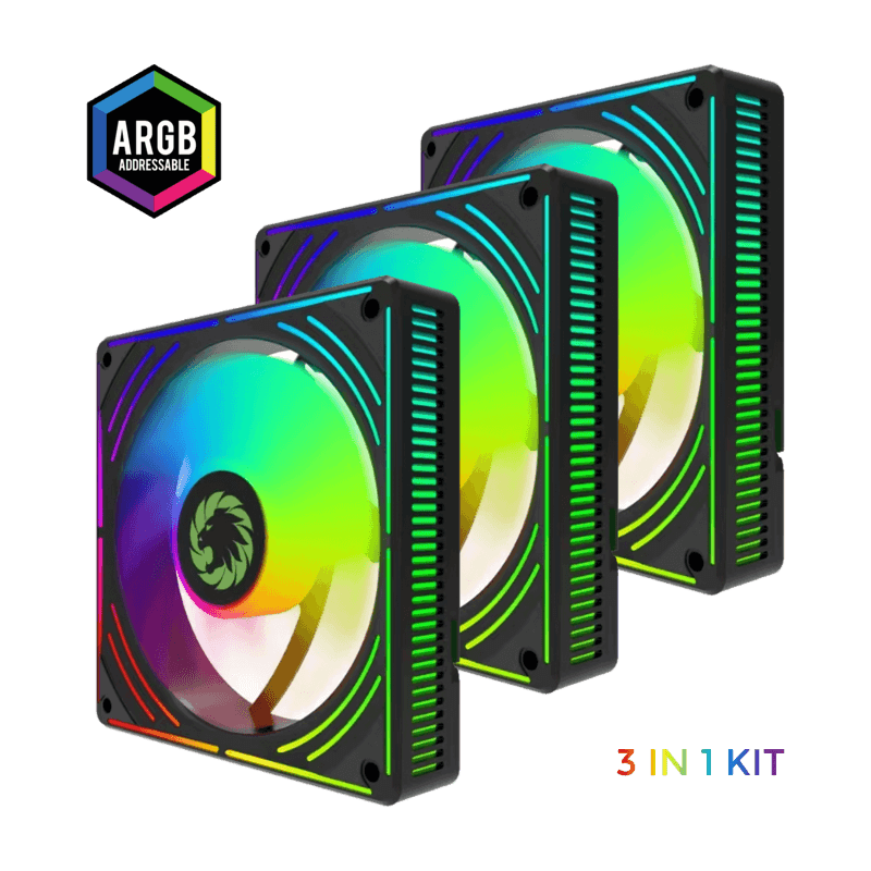GameMax RA300 BK, 120mm Black frame ARGB Fan 3 in 1 Kit, High-Performance Cooling Fan for PC Case.