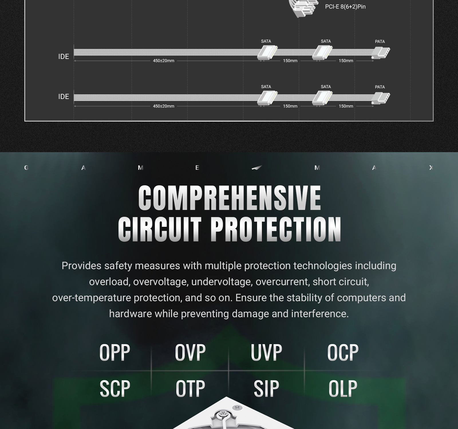 Protection:OPP / OVP/ UVP / OCP/ SCP / OTP / SIP / OLP / NLO