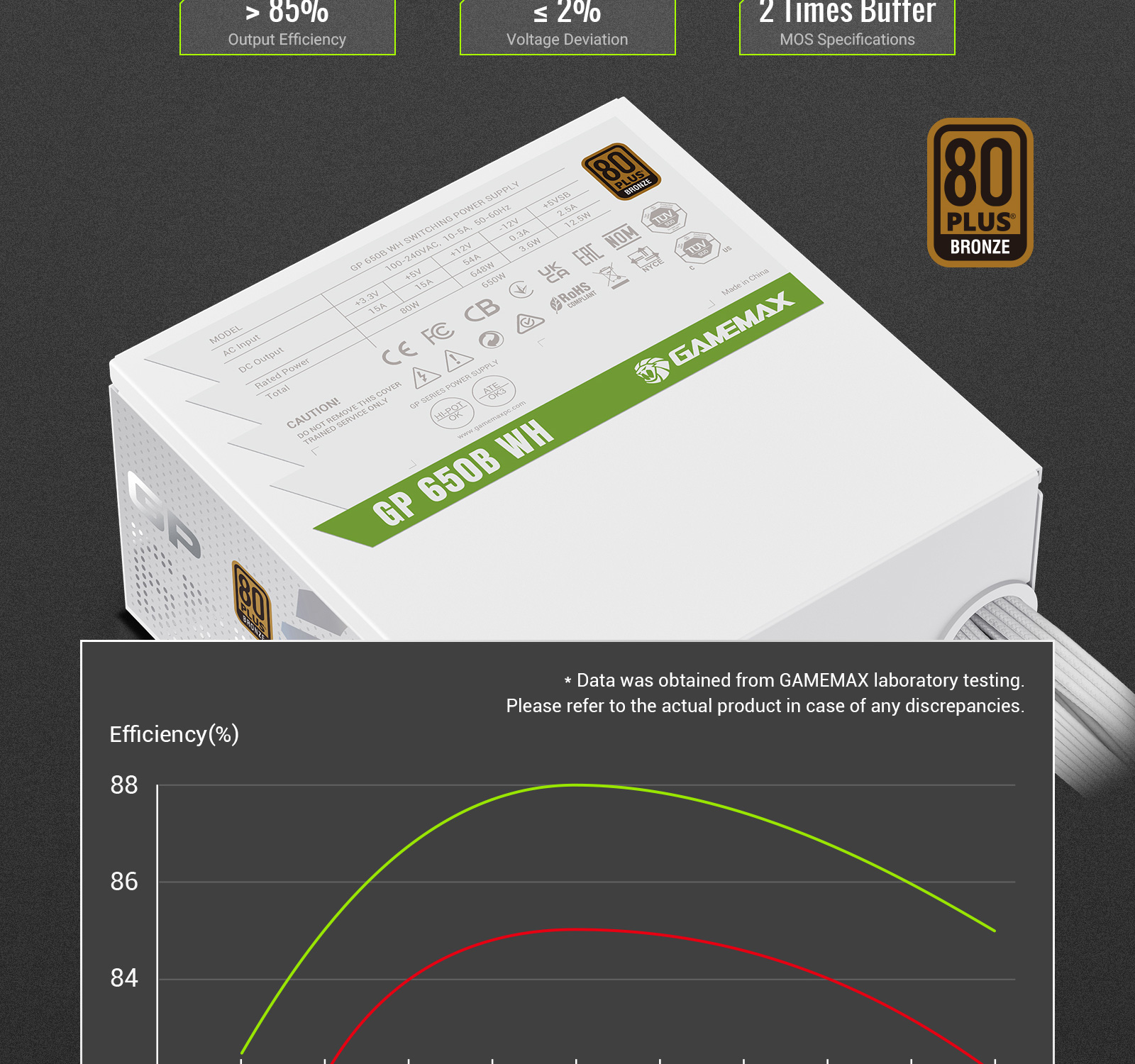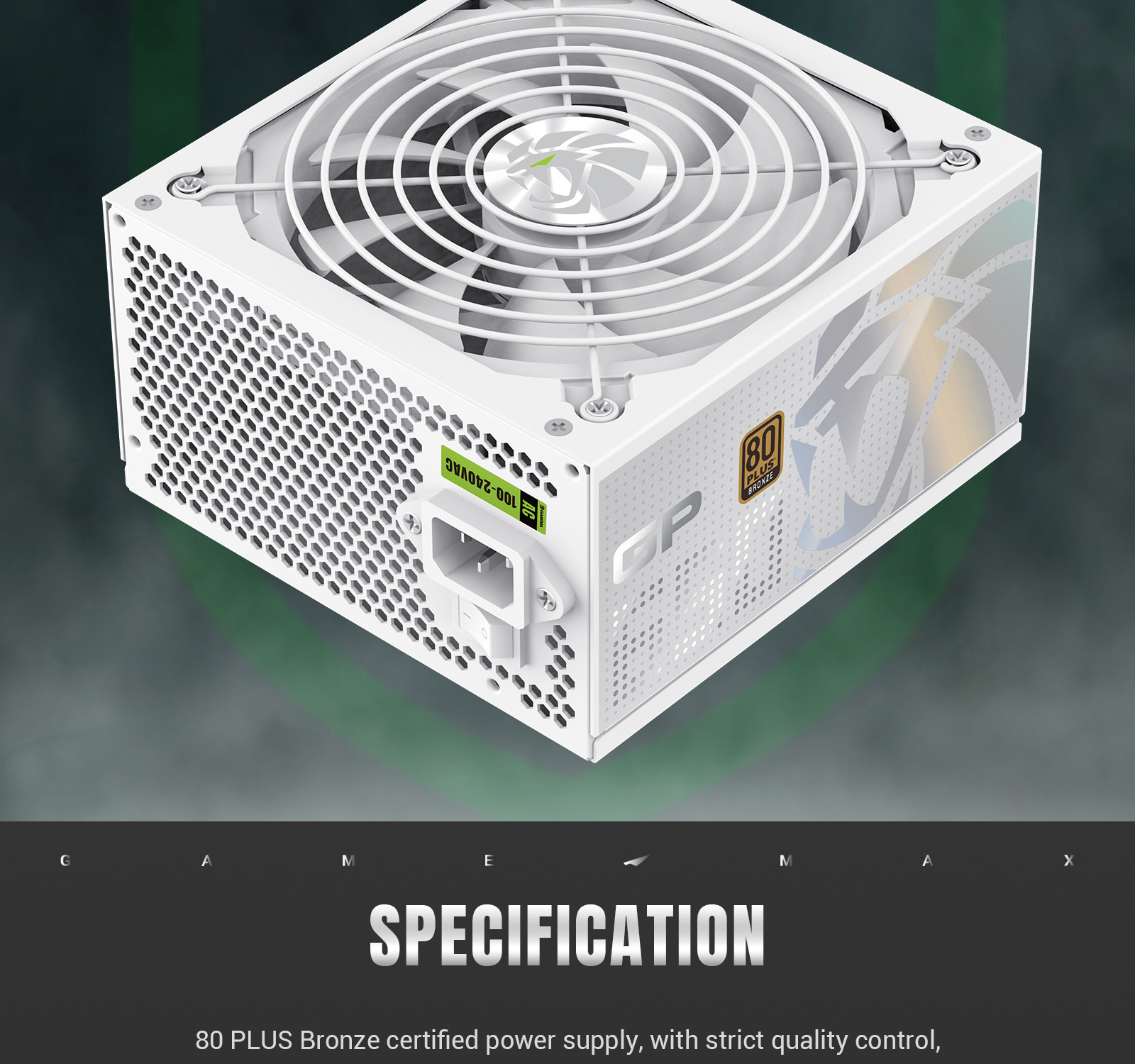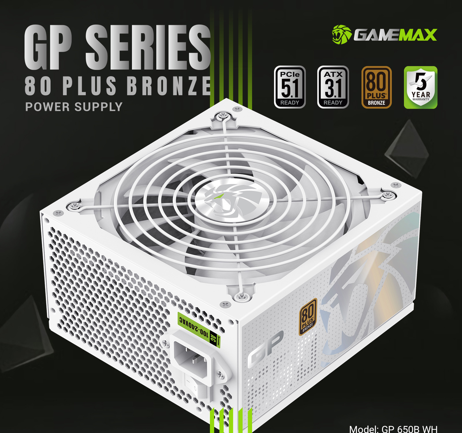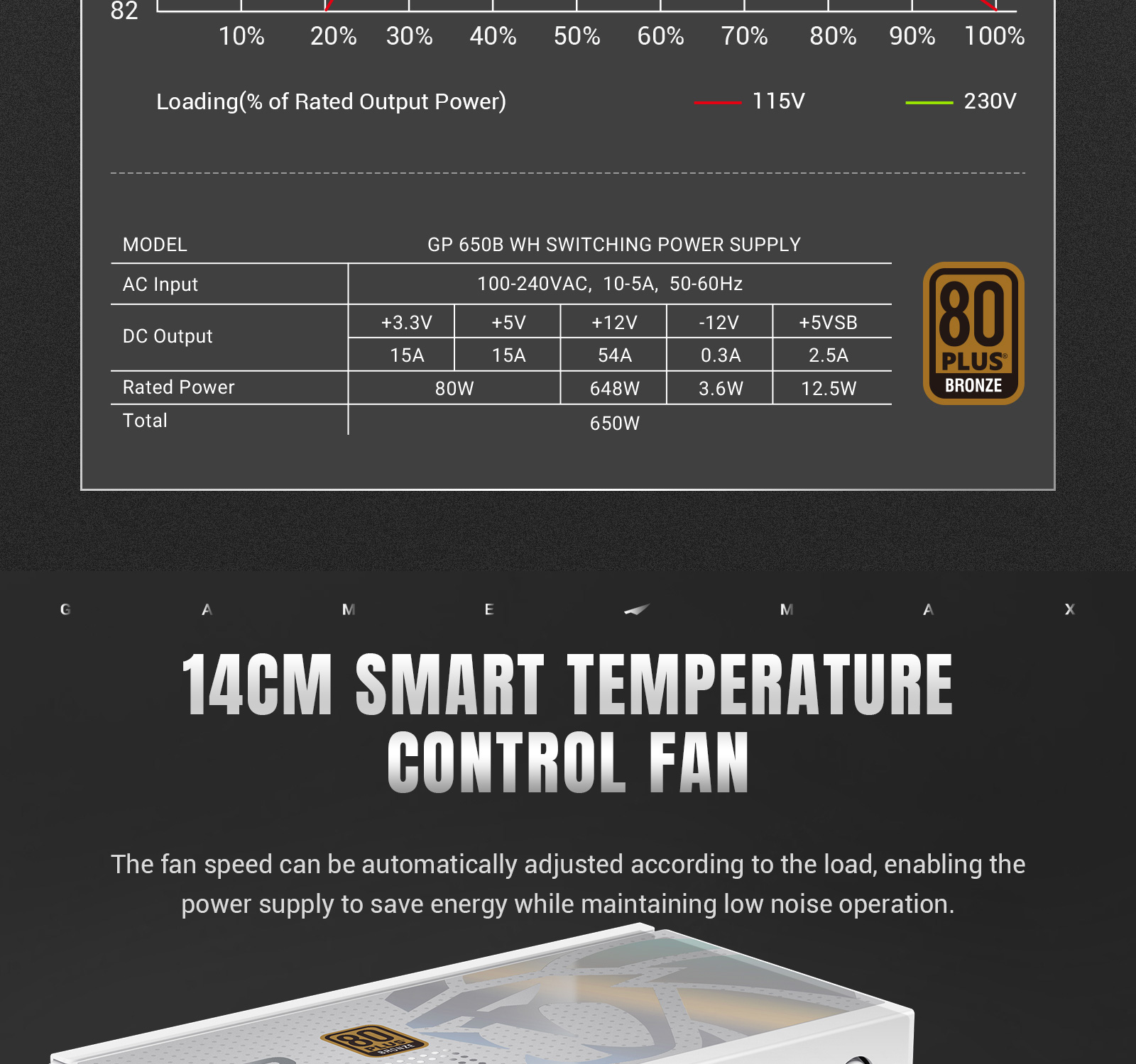 GAMEMAX GP 650B 80+ Bronze ATX3.1 PCIe5.1 Ultra-Stable Power Supply with Dual DC-DC Control, Smart Fan and Premium Cooling.