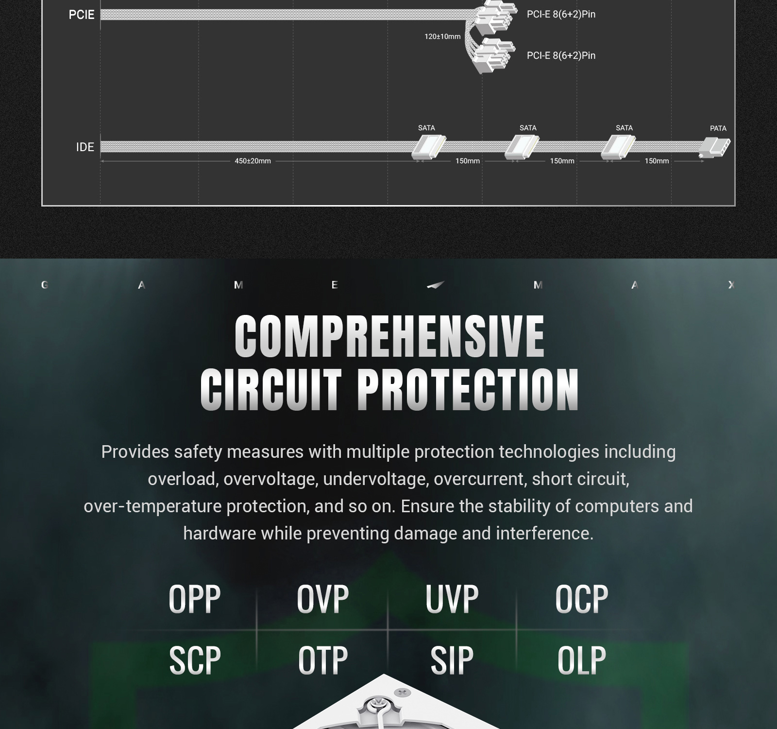 Protection:OPP / OVP/ UVP / OCP/ SCP / OTP / SIP / OLP / NLO
