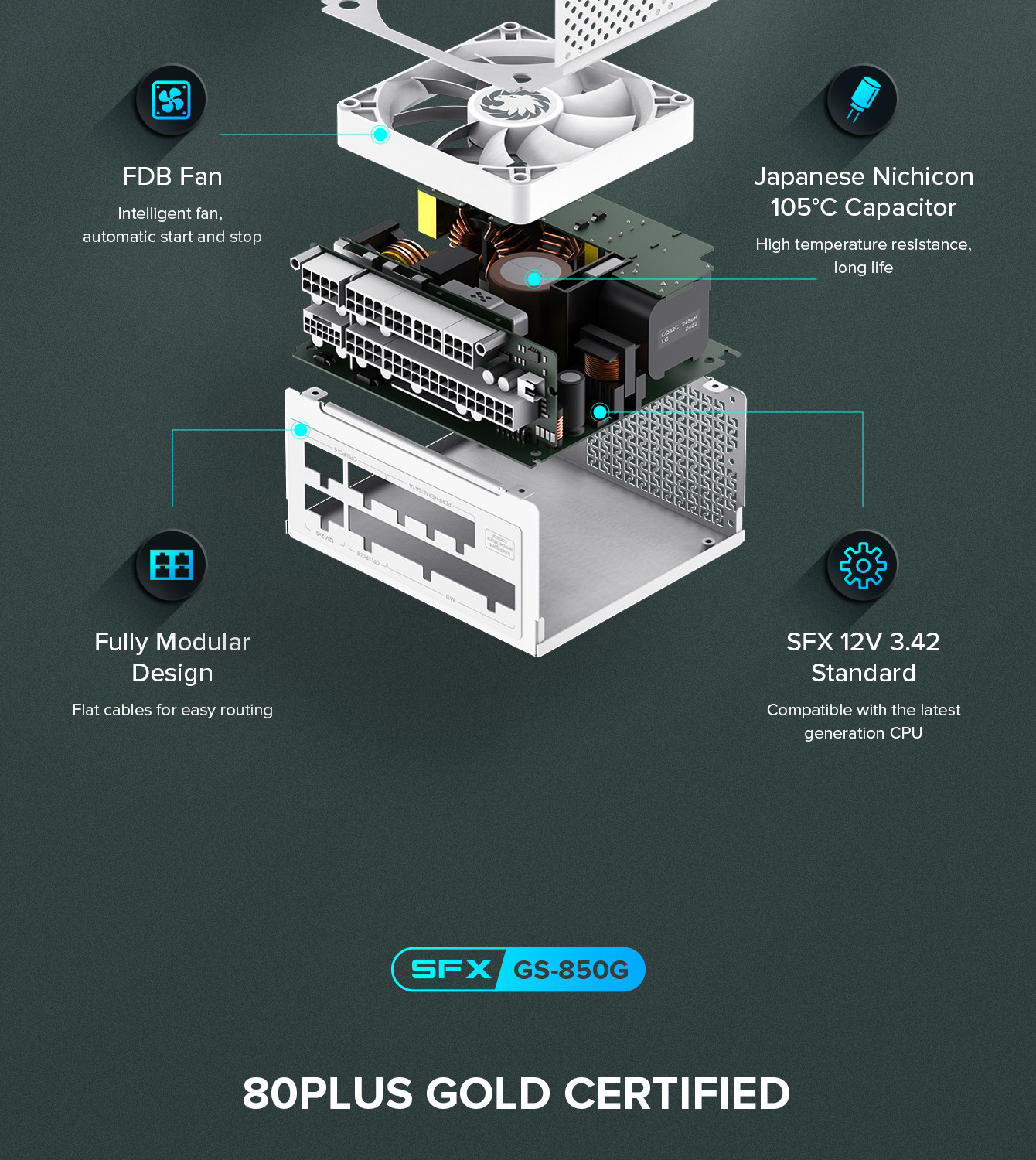 • Compact and Powerful: The SFX Modular 850W (2024) measures 125mm x 110mm x 65mm, delivering robust power in a small footprint.