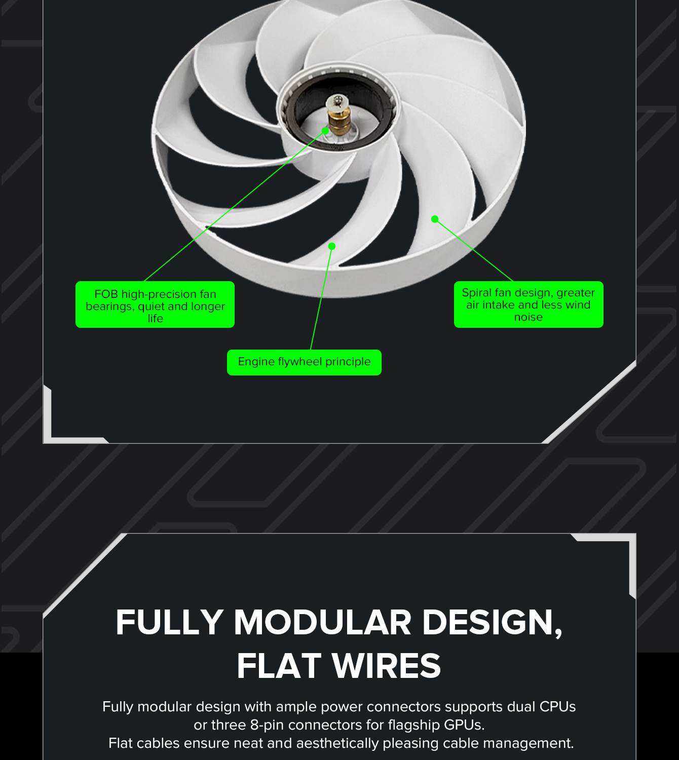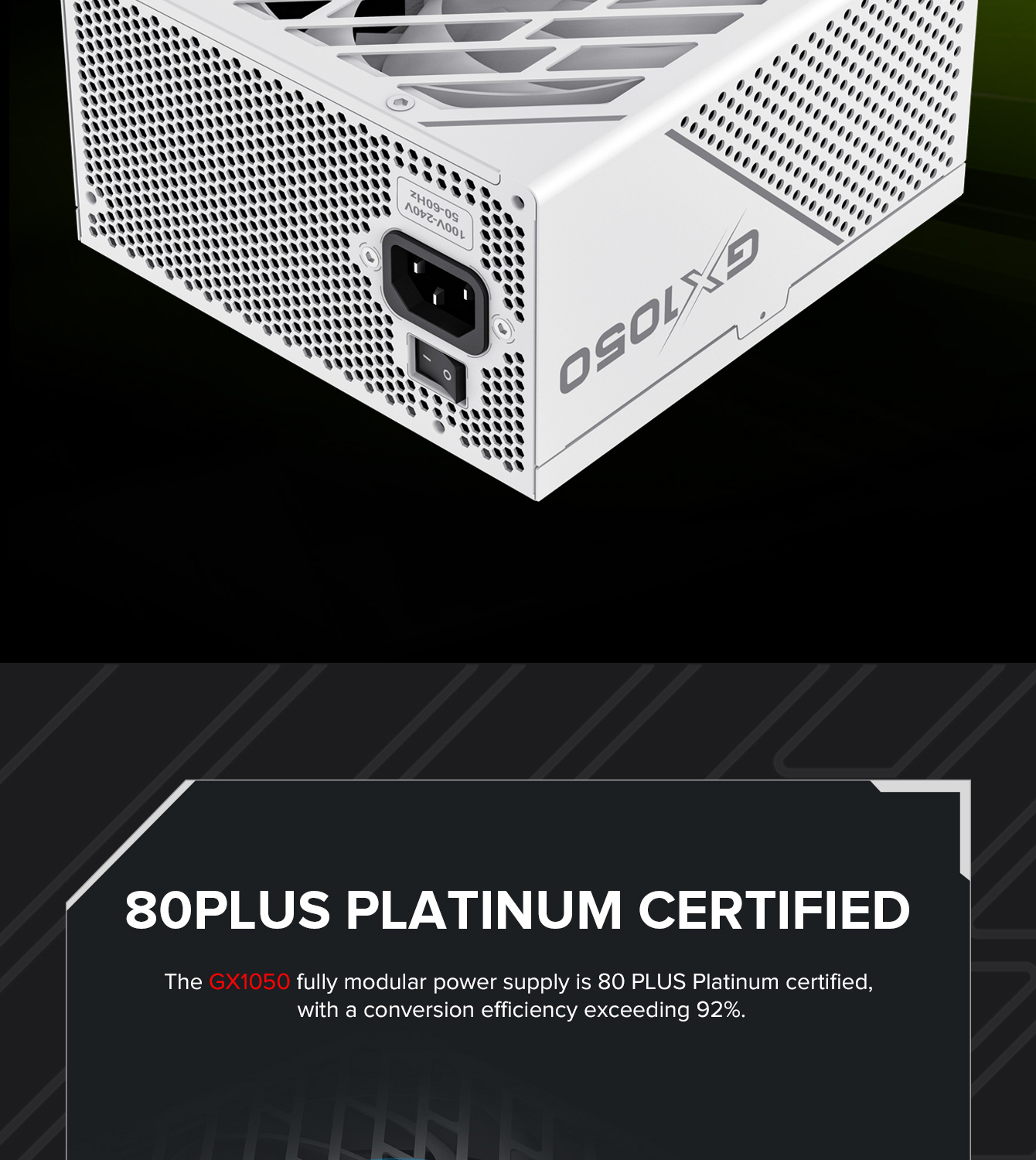 • 1050W 80 Plus Platinum ATX3.1 PCIe5.1 power supply with PCIe5.1 12V-2*6 connector for direct RTX™ 40 Series GPU connection, minimizing current loss.