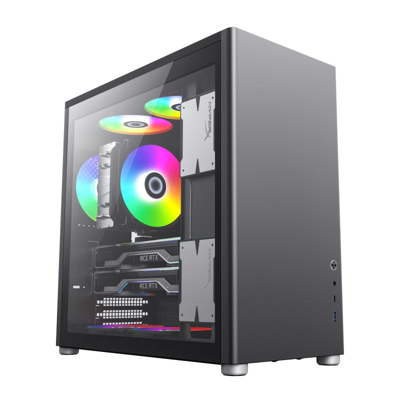 • The interchangeable design of the glass side panels and hollow side panels provides additional heat dissipation airflow channels and Support 240 water cooling and up to 168mm air-cooling CPU cooler