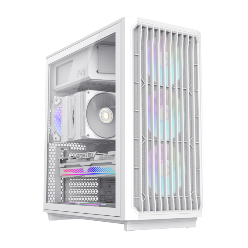 GameMax F45 White ATX Gaming Case, a great looking, airflow oriented, easy to install premium computer case with a heavy duty steel metal frame and 4.0mm tempered glass