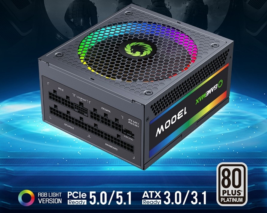 GameMax RGB-1300 ATX3.0/3.1 PCIe5.0/5.1 Ready, Fully Modular 80+ Platinum Certified, LLC+DC-DC design for Powerful single +12V rail helps ensure a stable and reliable supply to other PC components. with 140mm ARGB fan helps deliver brighter and stunning light effect and supports synchronization with compatible RGB motherboards from ASUS, GIGABYTE, MSI, and ASRock for countless illumination possibilities.