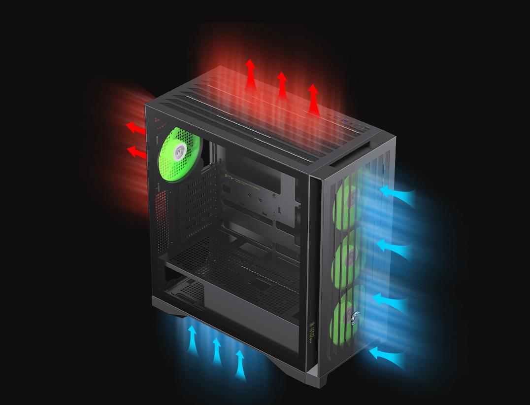 The airflow design is arguably the most crucial element when determining how well a case will cool your system. A case that supports good airflow ensures that cool air enters the system and hot air exits effectively.