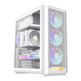 GameMax F46 WH ATX Gaming PC Case: a sleek, airflow-optimized, and easy-to-install premium case featuring a durable steel frame and 4.0mm tempered glass.
