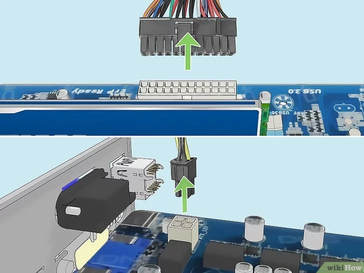 This is the largest connector from the pc power supply to the motherboard, typically 20 or 24 pins.