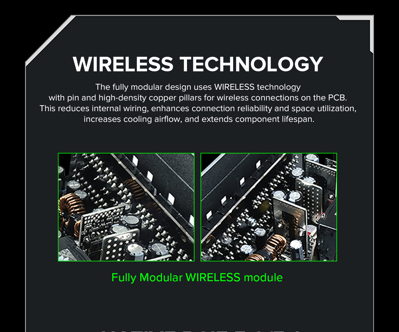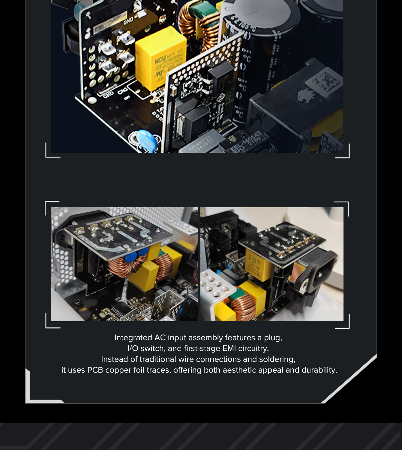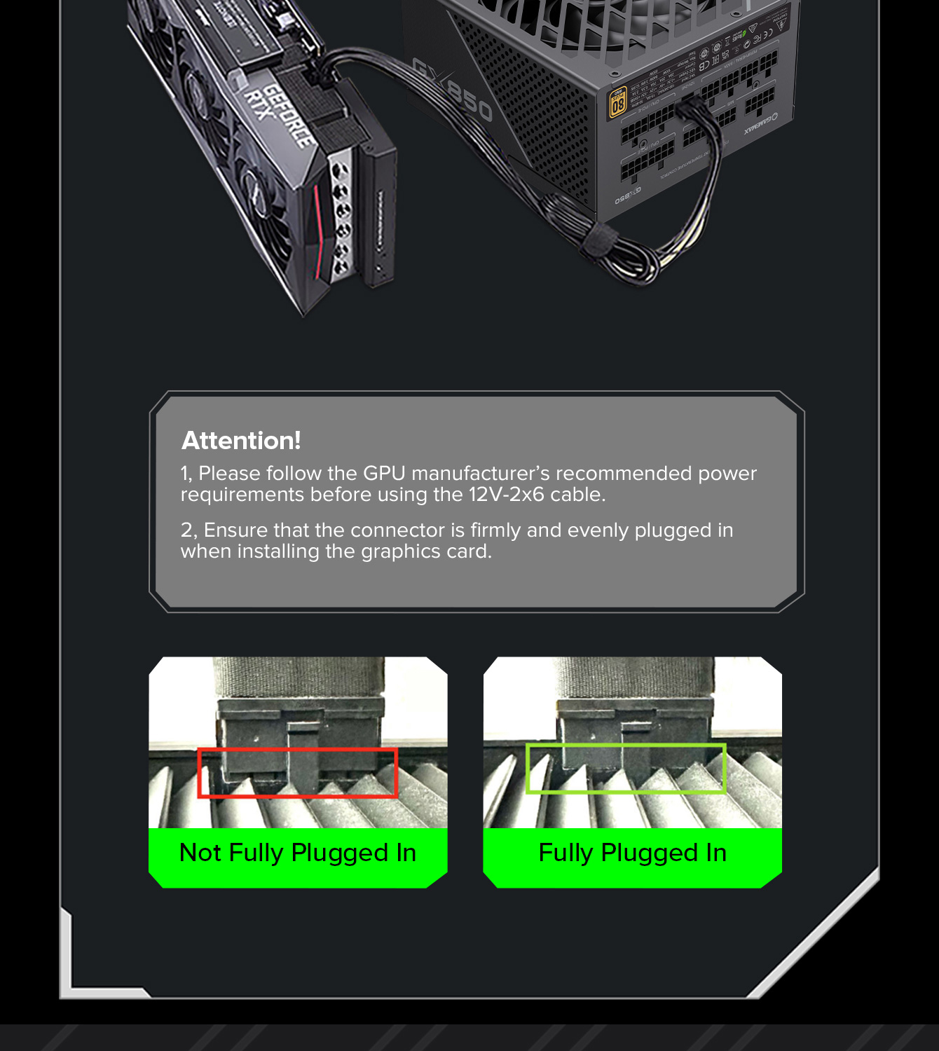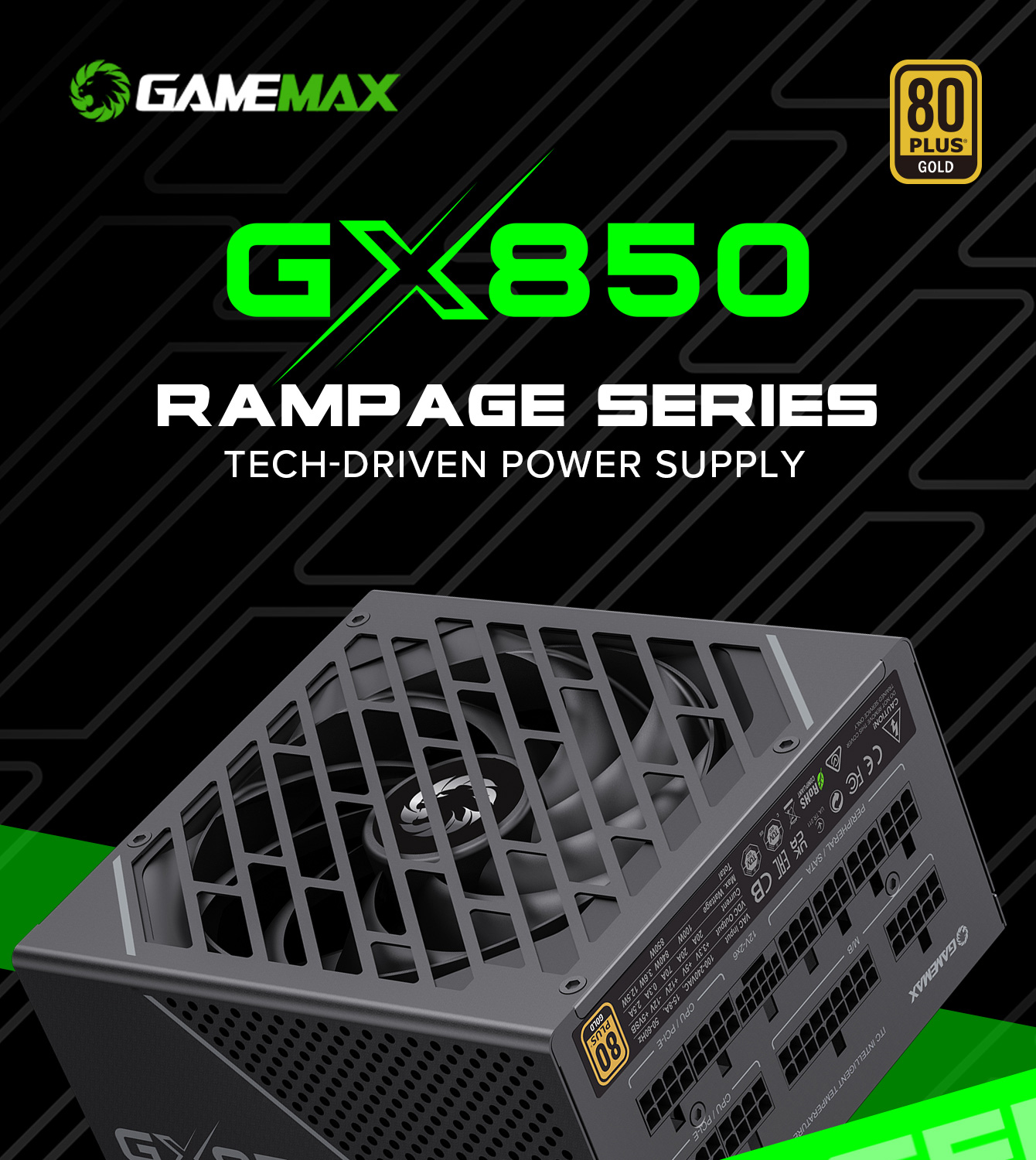 850W 80 Plus Gold ATX3.1 PCIe5.1 power supply with PCIe5.1 12V-2*6 connector for direct RTX™ 40 Series GPU connection, minimizing current loss.