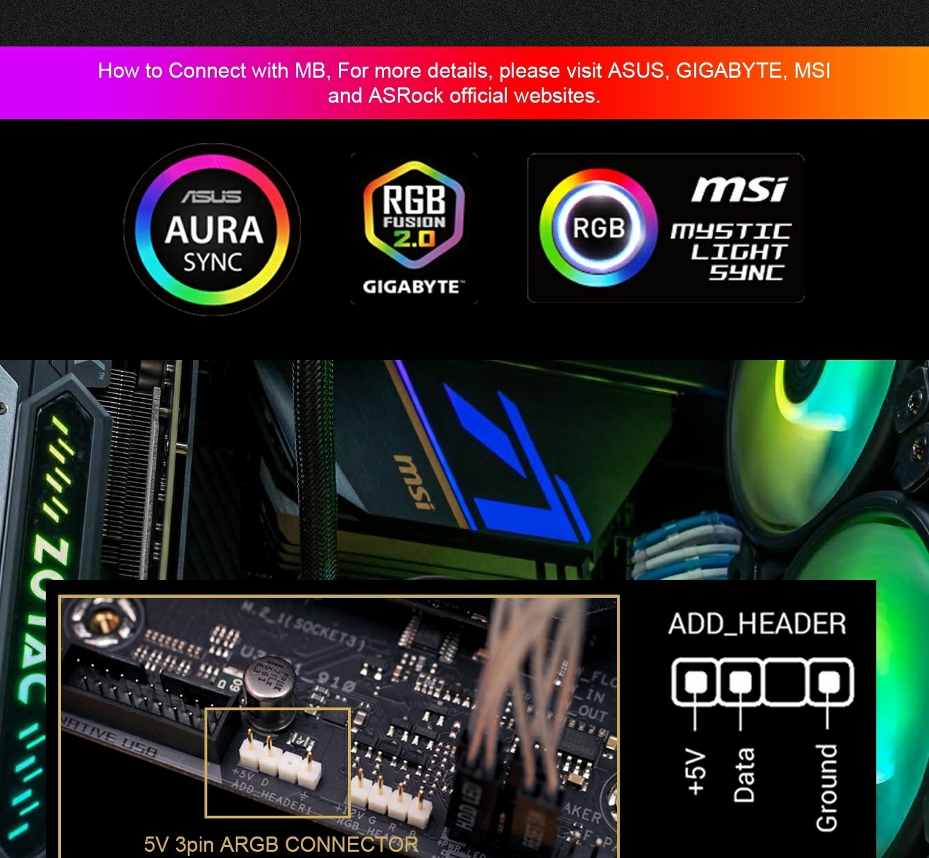 | Aura SYNC | Access external ARGB HUB or 5V 3pin signal from motherboard |