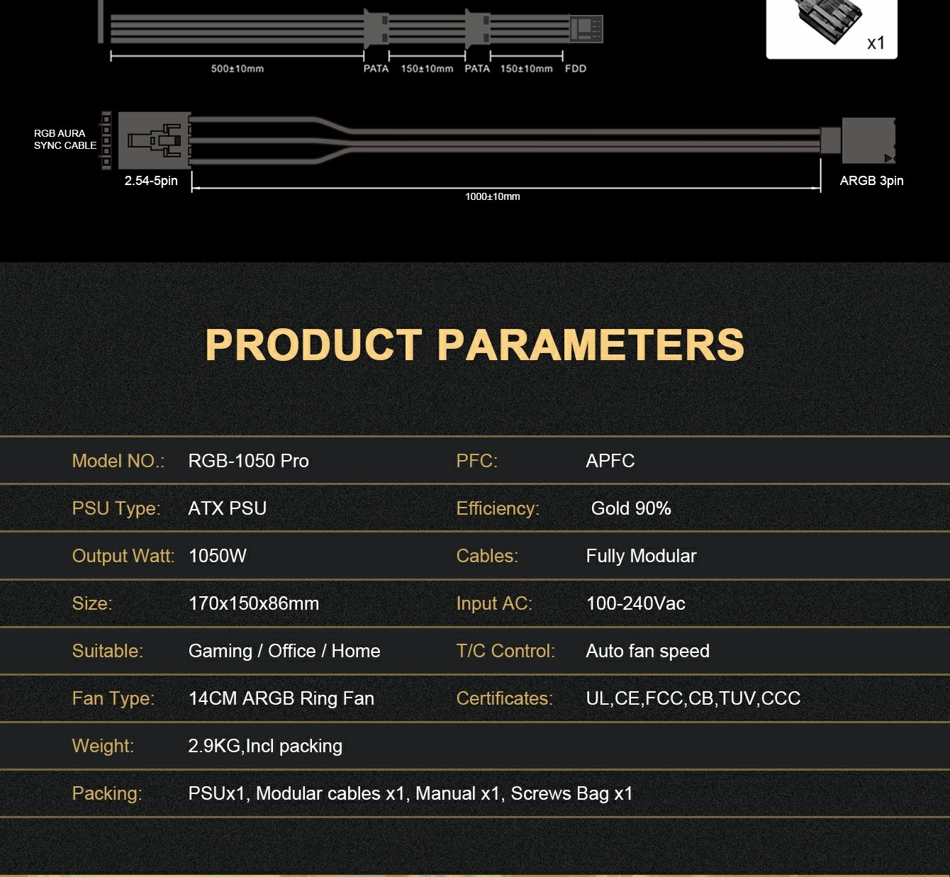 | Fan Information | Fan Size | 140mm with ARGB LEDs |