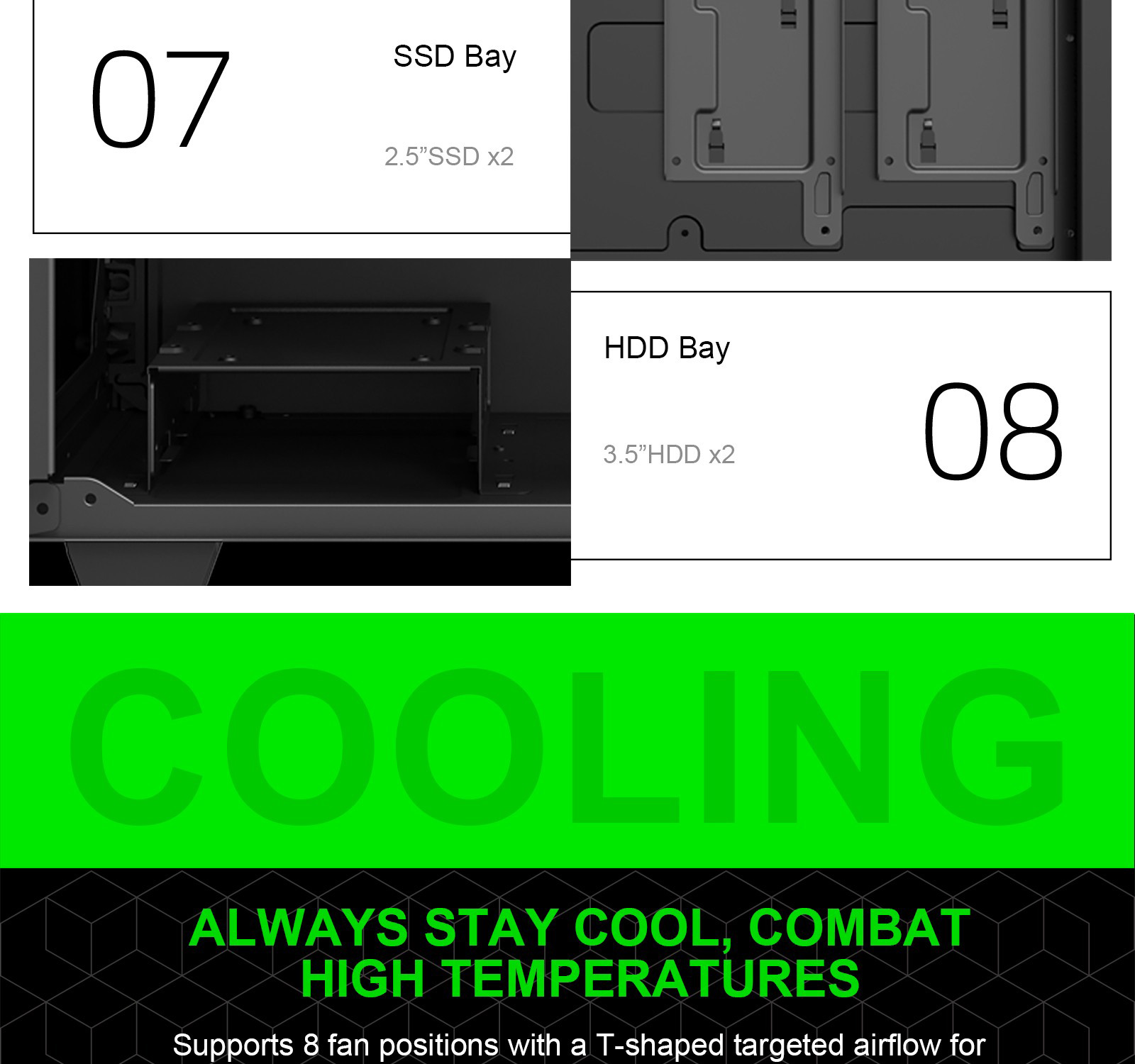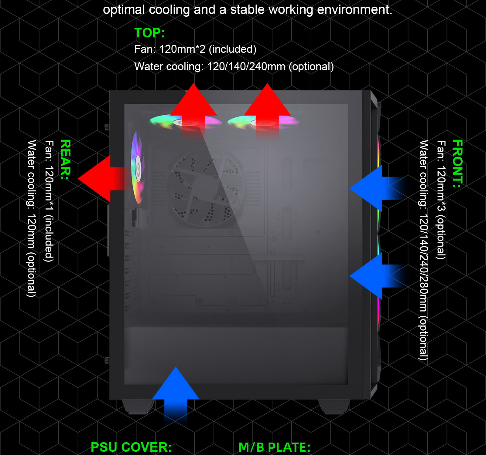 | M/B Form Factor | ATX、M-ATX、E-ATX (No fan on front) | |