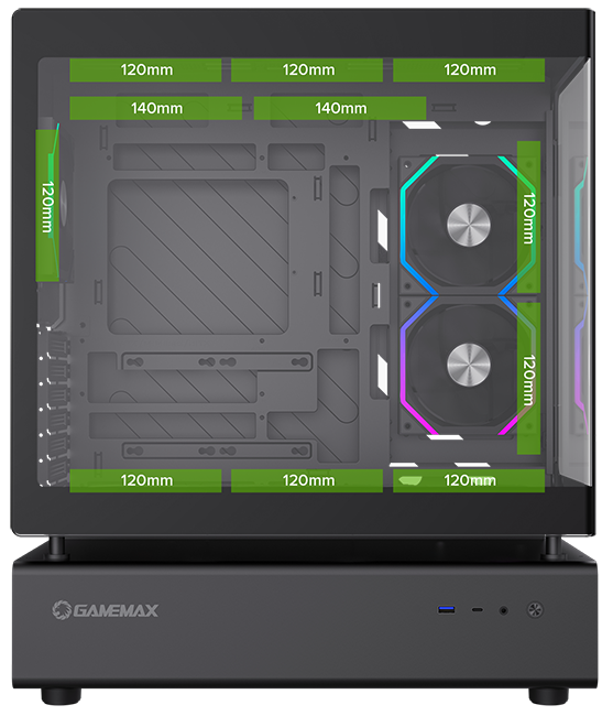 | Top | 3x120mm,2x140mm (Fan optional) | |