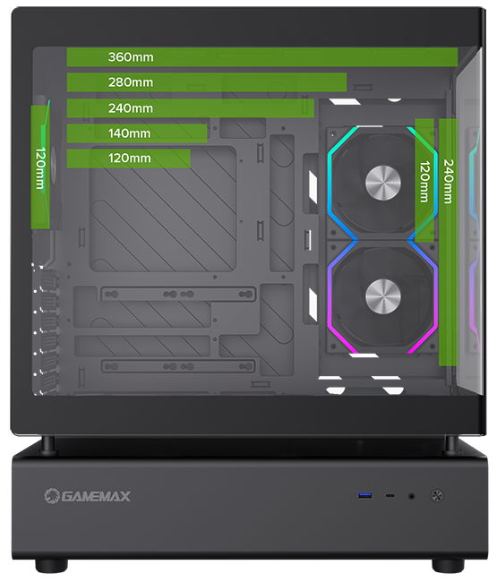 | Water Cooling Support (Radiator Size) | M/B Side | 120mm,240mm |