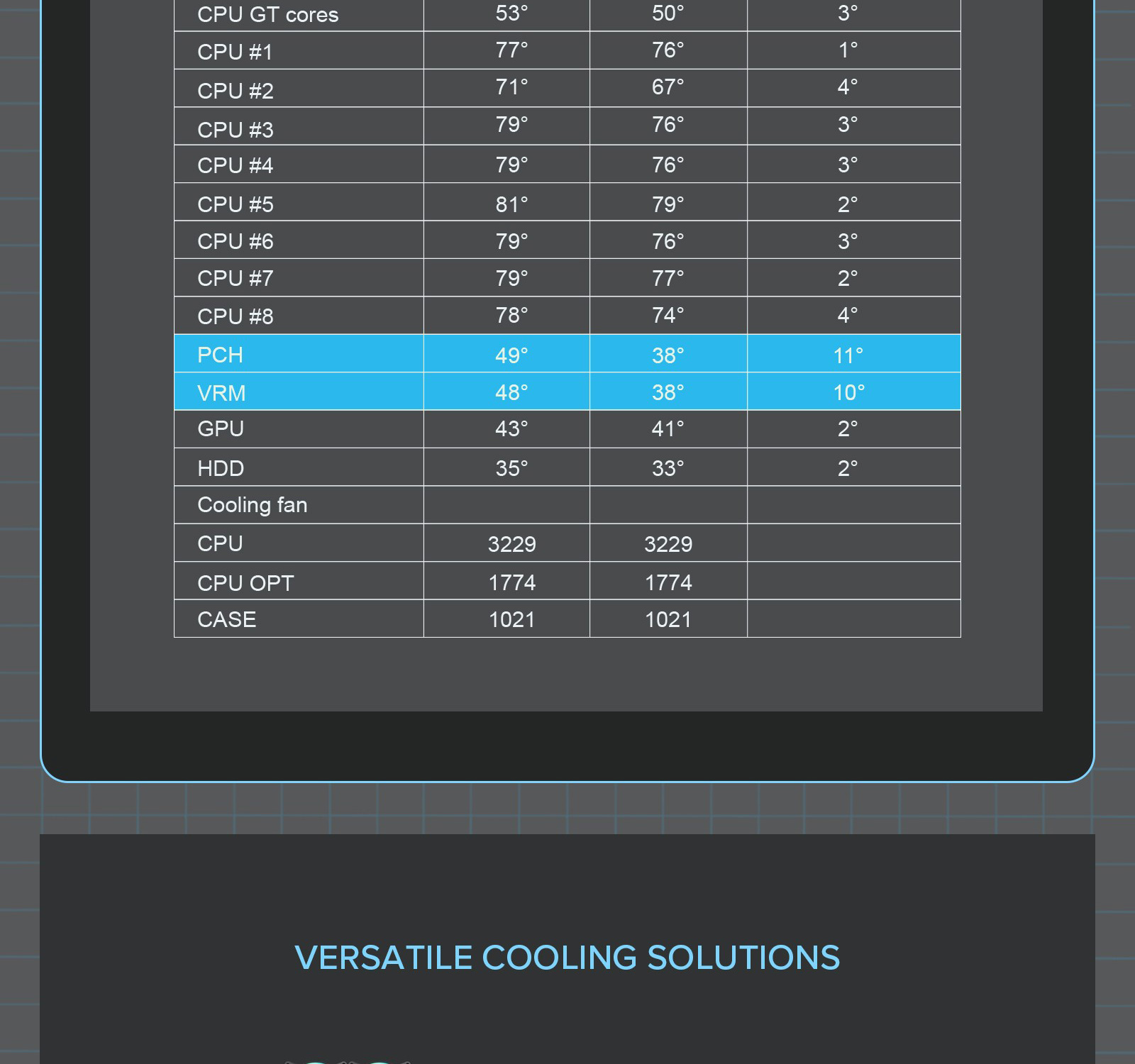 • Запатентованное охлаждение COC: 12-см вентилятор с контролем температуры обеспечивает стабильность во время интенсивных игр и разгона.