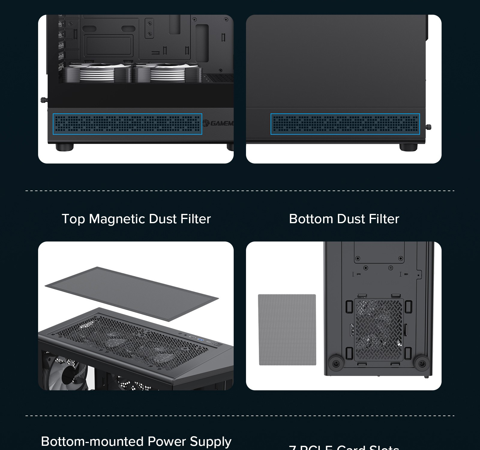 • 5 ARGB вентиляторов: Бесконечное свечение для захватывающего визуального эффекта.