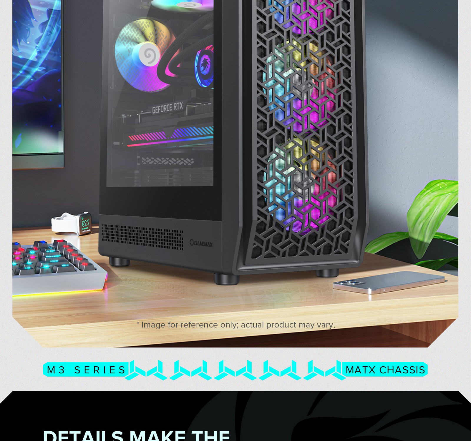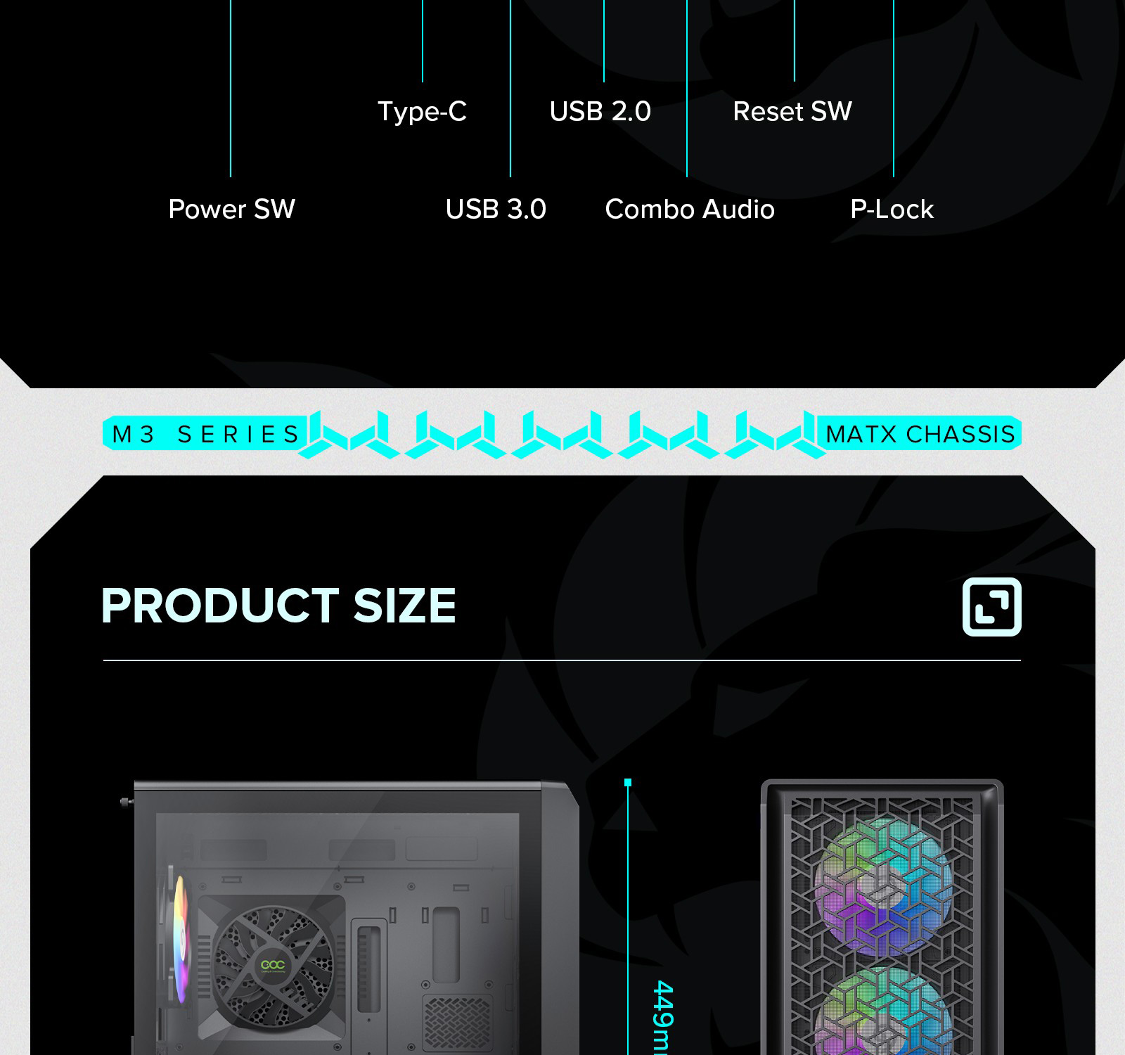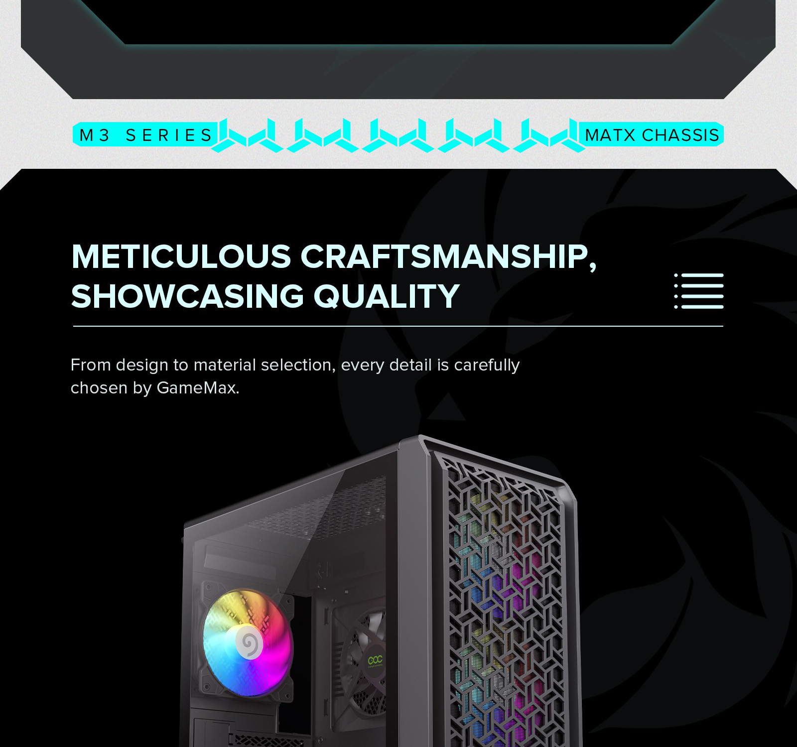 • Компактный корпус с высокой совместимостью - Поддерживает видеокарты до 330 мм, процессорные кулеры до 155 мм и предлагает 19 мм пространства для управления кабелями.
