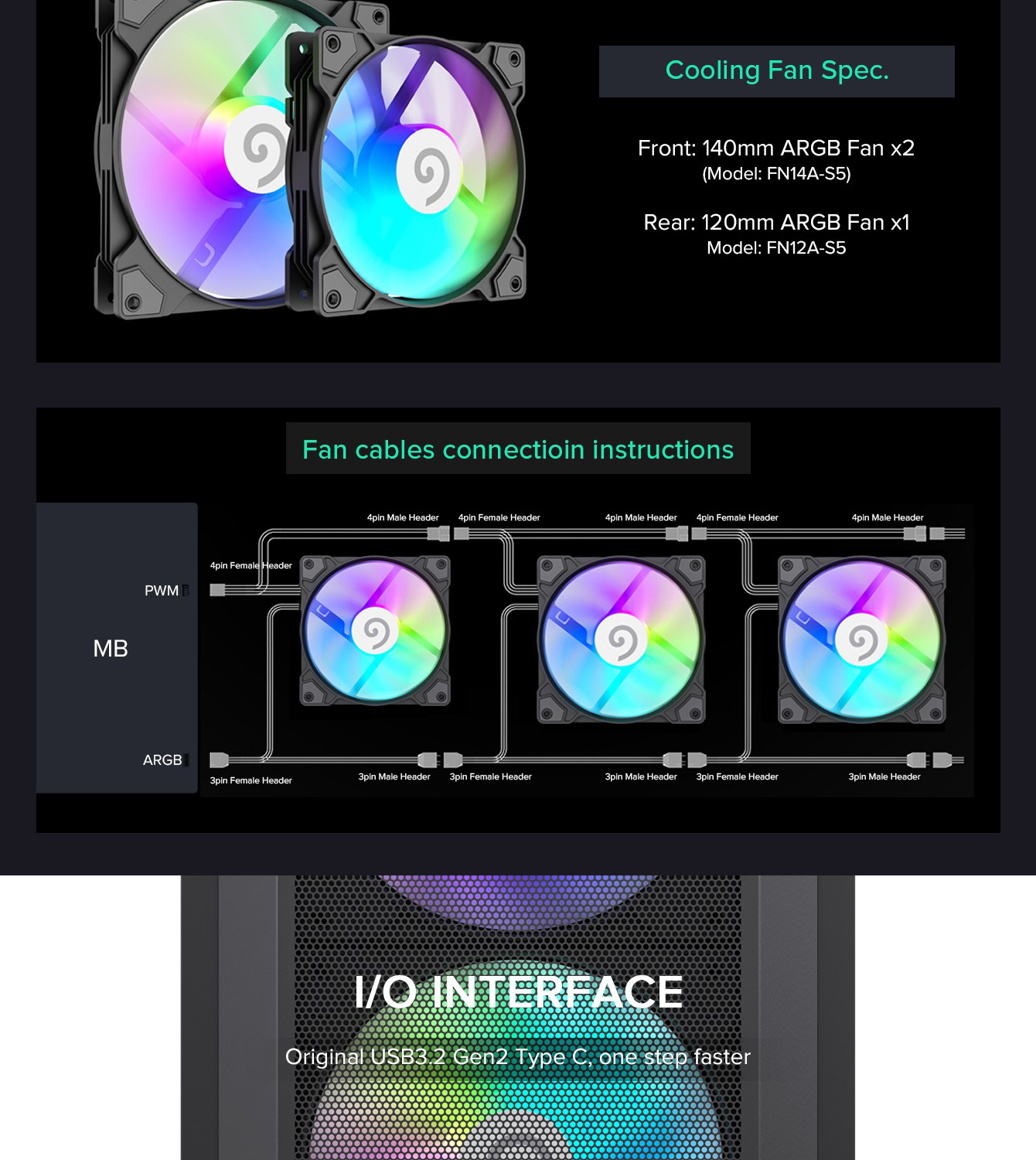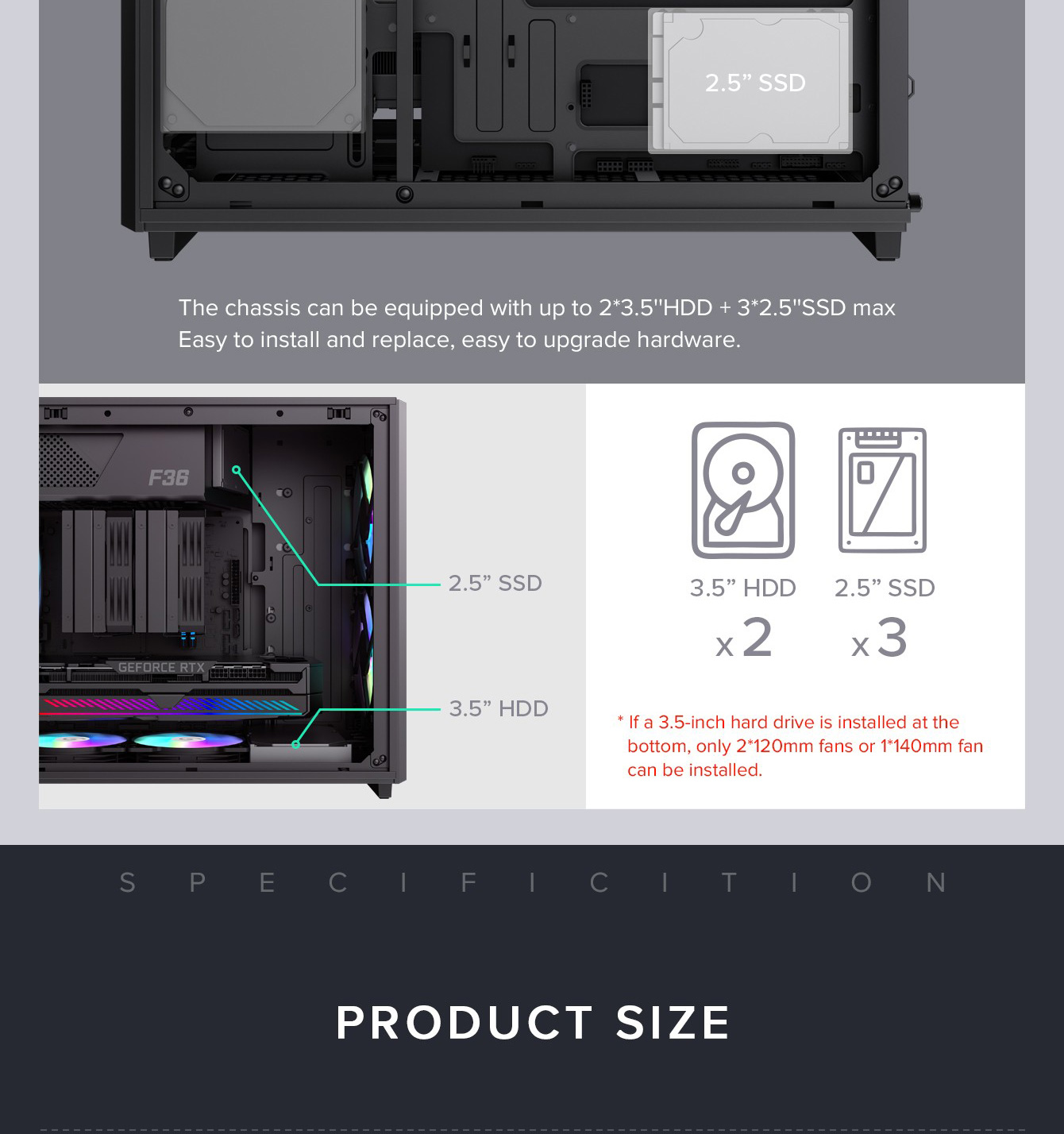 | Bottom | 3x 120mm / 2x 140mm (optional) | |