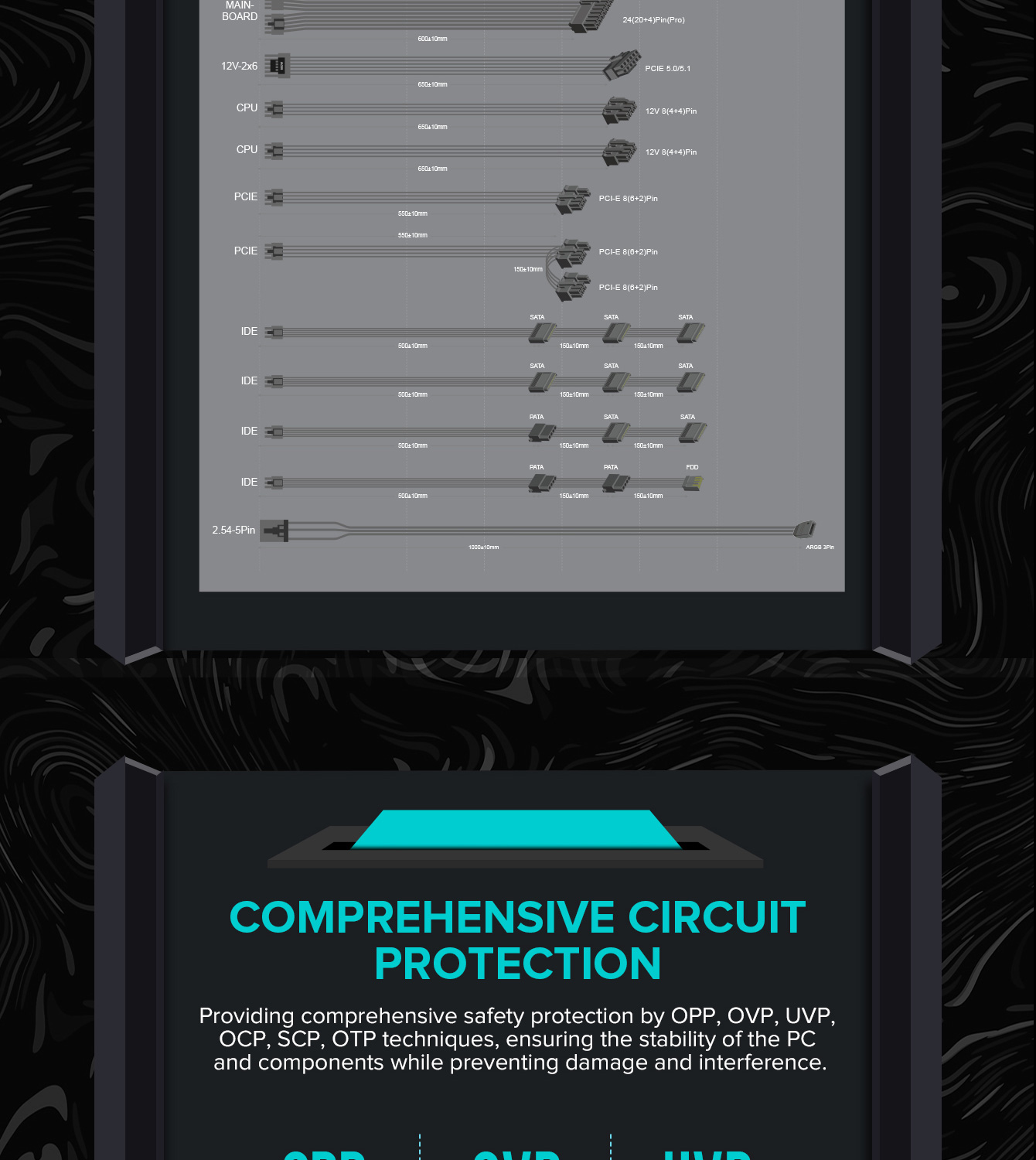 • Передовой дизайн: Технология LLC+DC-DC и мощная однолинейная шина +12V для стабильного распределения энергии даже при высокой нагрузке.